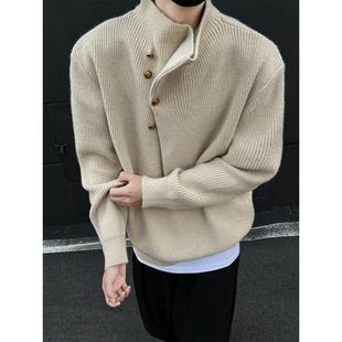半高领设计感针织开衫 新款 洋气紫色立领方扣毛衣女2025年春季 韩版