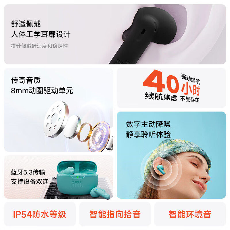 不入耳 Clips琉璃扣耳夹蓝牙耳机无线透明开放式 王楚钦同款 JBL