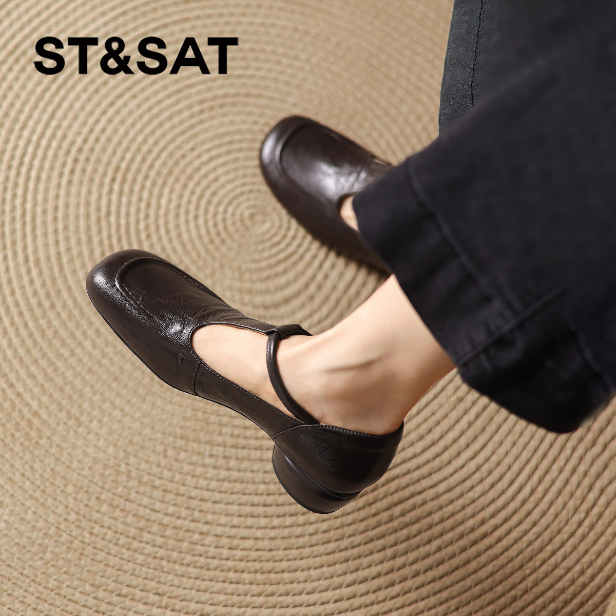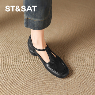 秋季 2025新款 棕色玛丽珍女鞋 粗跟豆豆鞋 星期六羊皮单鞋 小皮鞋 女款