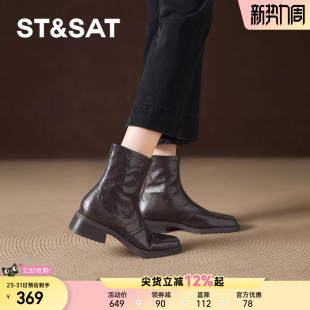 星期六方头短靴女加绒2025新款 切尔西靴瘦瘦靴子羊皮马丁靴 秋冬季