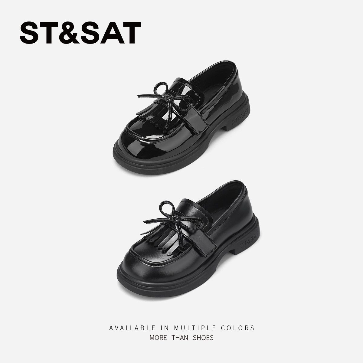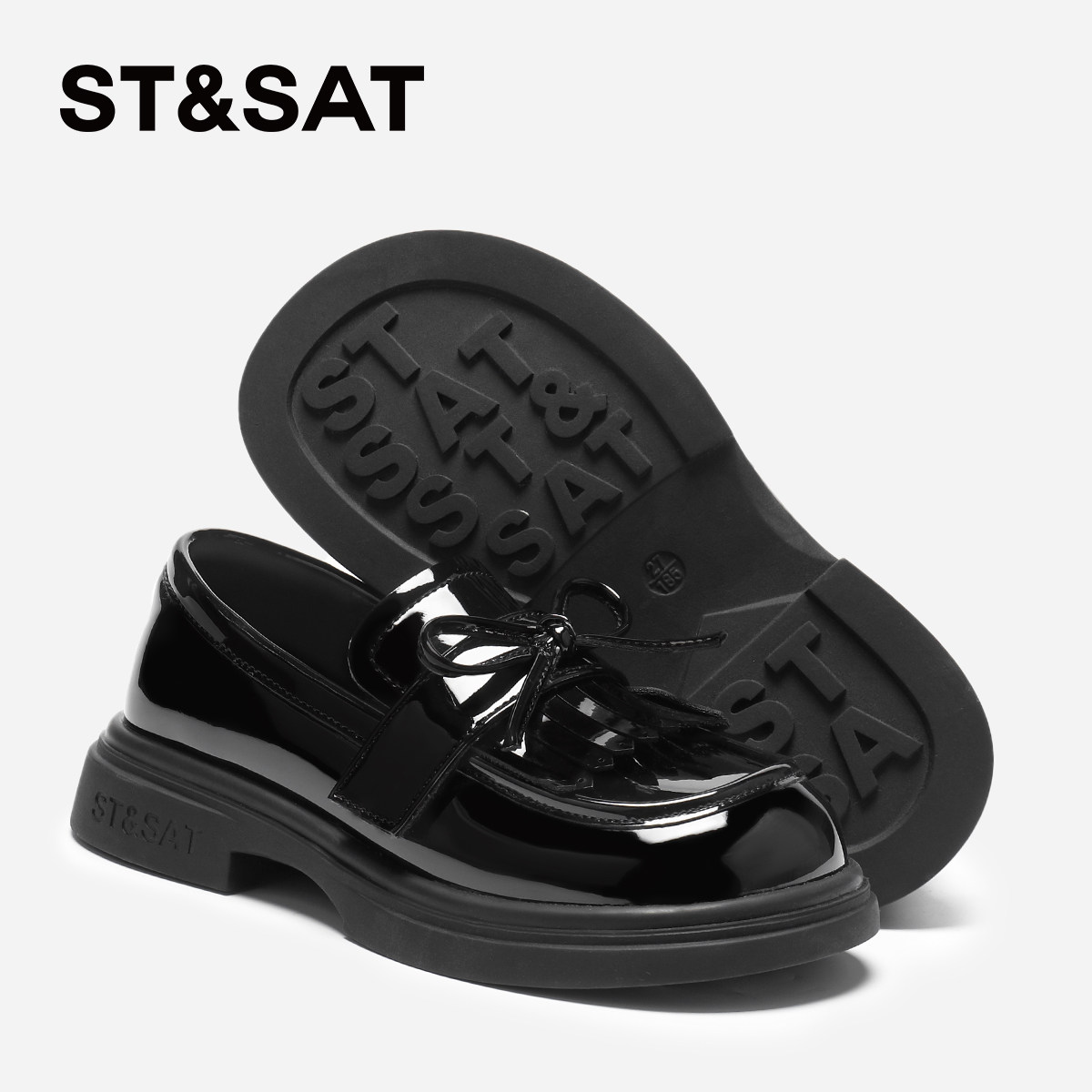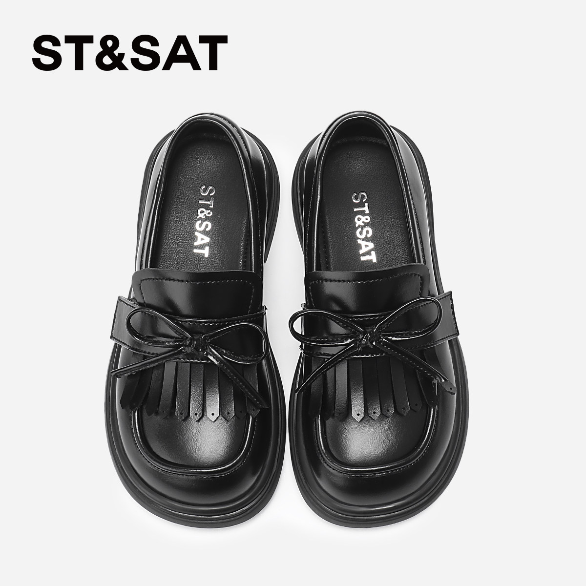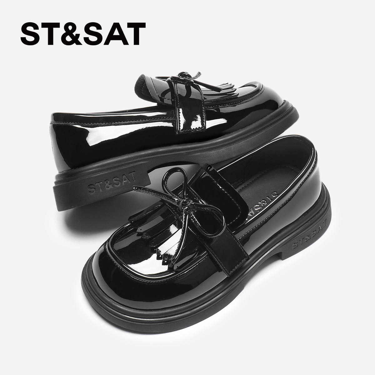 单鞋 孙乐言推荐 真皮黑色小皮鞋 女26新款 B2972AA6预 百丽海鸥乐福鞋