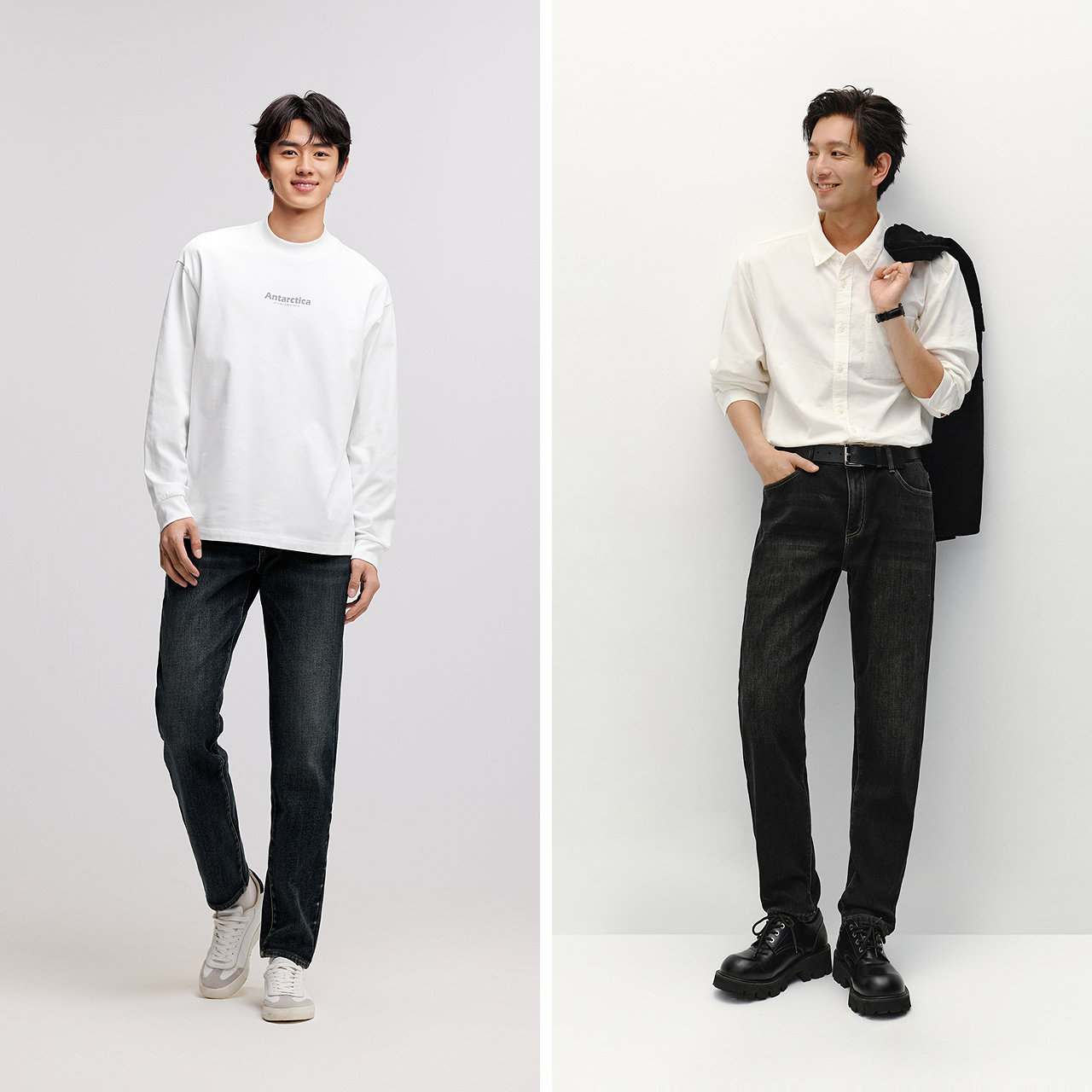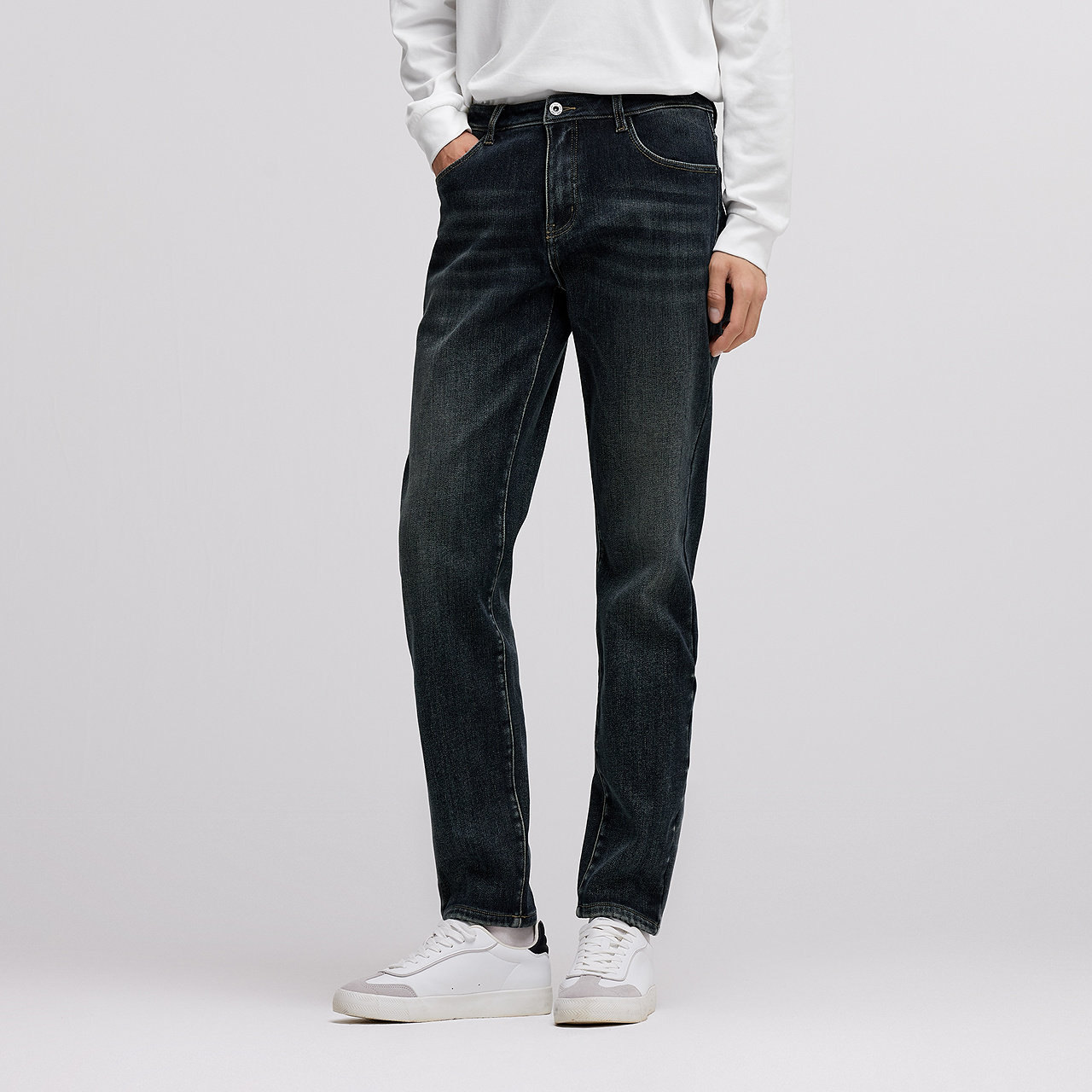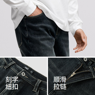 森马牛仔裤 秋冬男裤 男冬季 复古简约通勤长裤 加绒弹力小脚裤 森柔