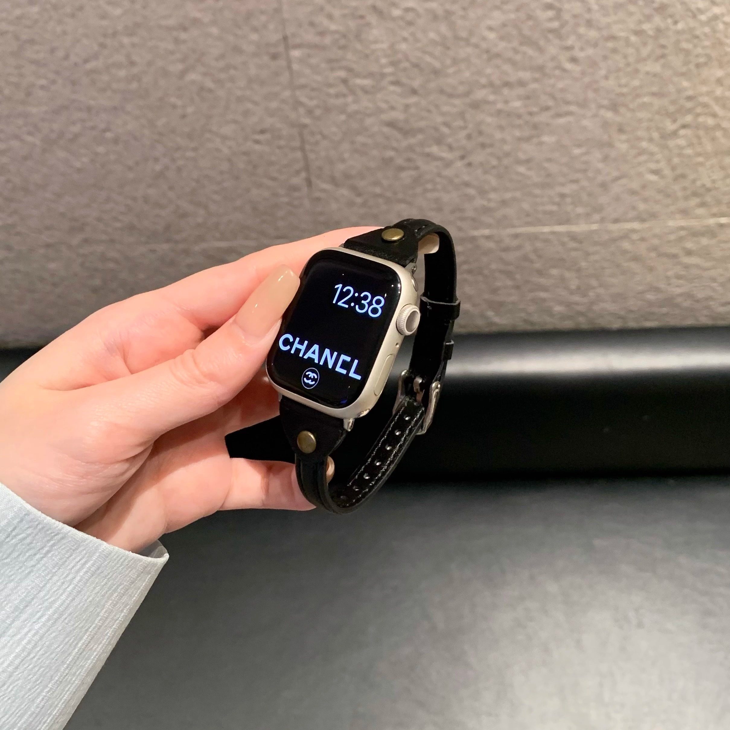 新款 疯马钉皮适用applewtach10苹果s11表带小米9pro华为fit4fit3