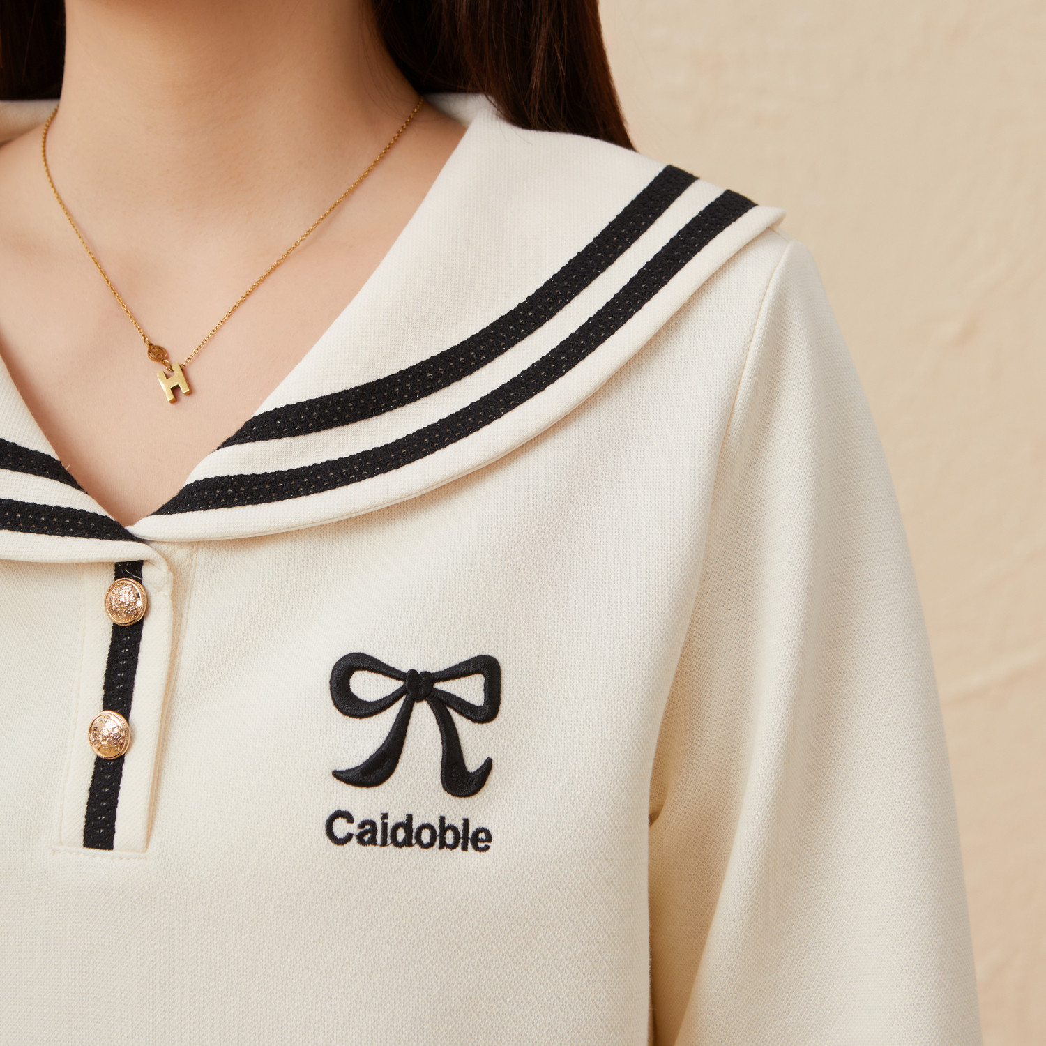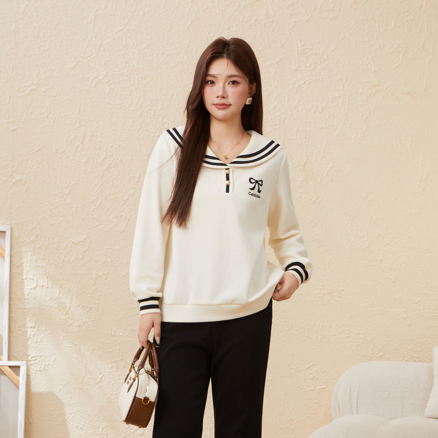 采多宝大码 海军领刺绣针织卫衣胖mm蝴蝶结减龄宽松显瘦上衣 女装