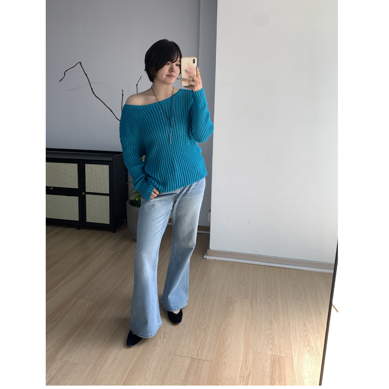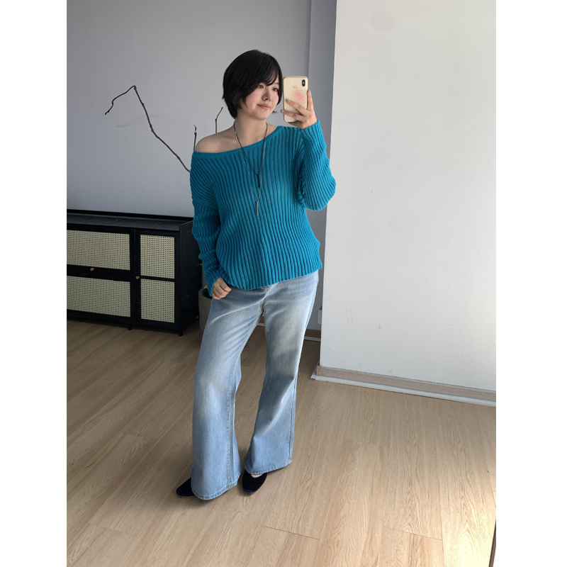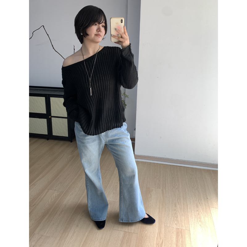女 显瘦宽松微喇休闲长裤 FishCake大码 微胖水洗磨白直筒阔腿牛仔裤