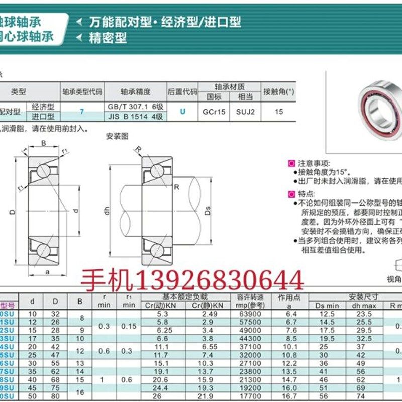 7002 7003 7007SU BBR7000 7006 7001 7005 角接触球轴承 7004