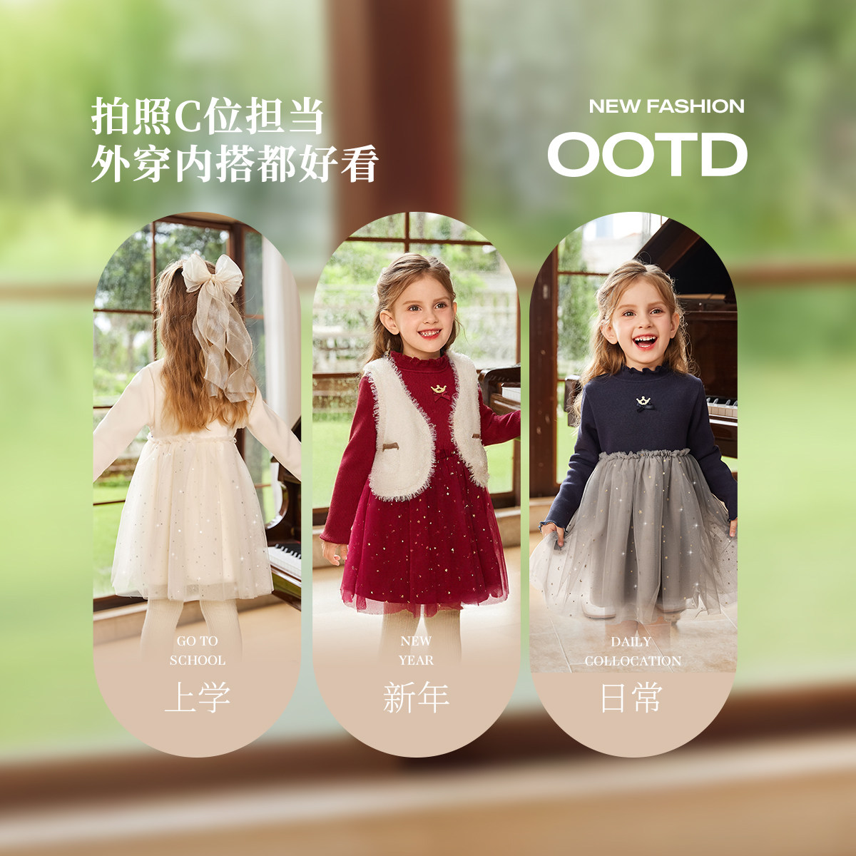 泰迪熊娃娃领泡泡袖 guys 毛绒连衣裙外套大衣 little Two