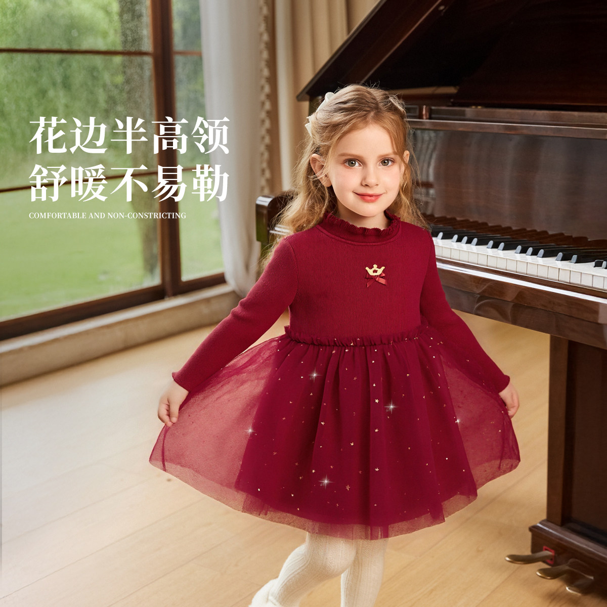 Palglg甜美风黑色丝绒背心连衣裙女冬季 木耳边直筒裙子 高级感法式