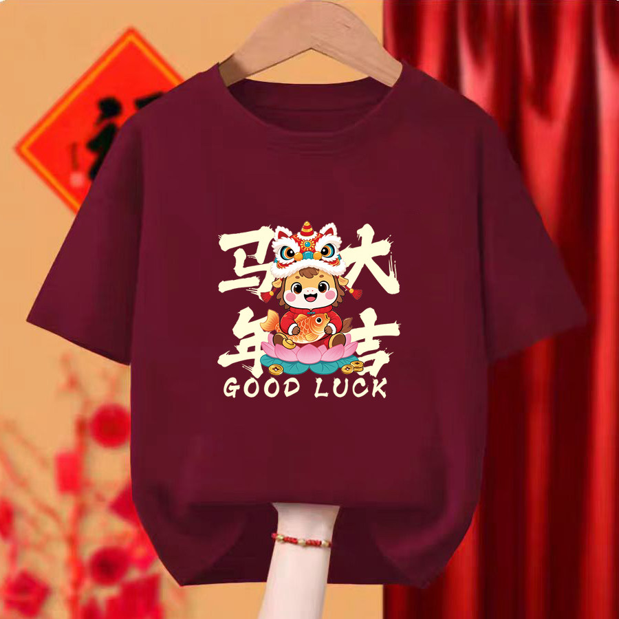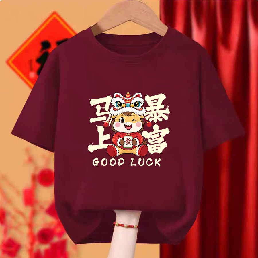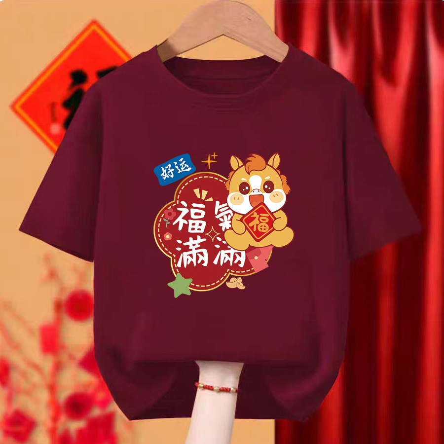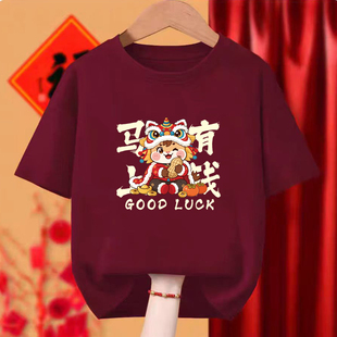 马年酒红色t恤2026男女情侣短袖 定制新年本命生肖年会舞蹈服DIY衣