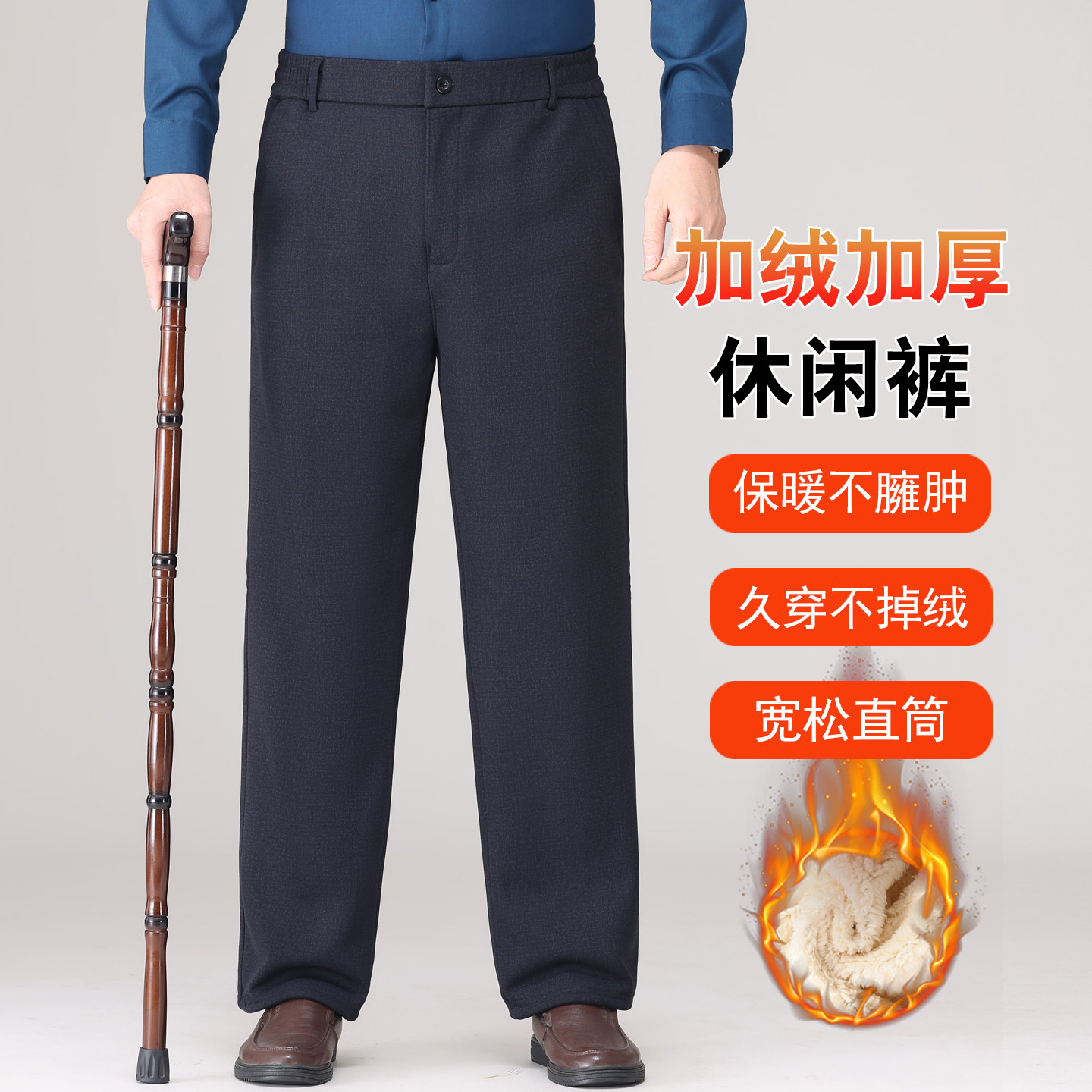 中老年驼绒棉裤 老人三层加厚冬奶奶宽松 男女高腰加绒保暖裤