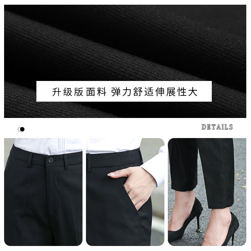 休闲烟管裤 春秋职业九分裤 女高腰垂感直筒修身 裤 子 女弹力藏青西装