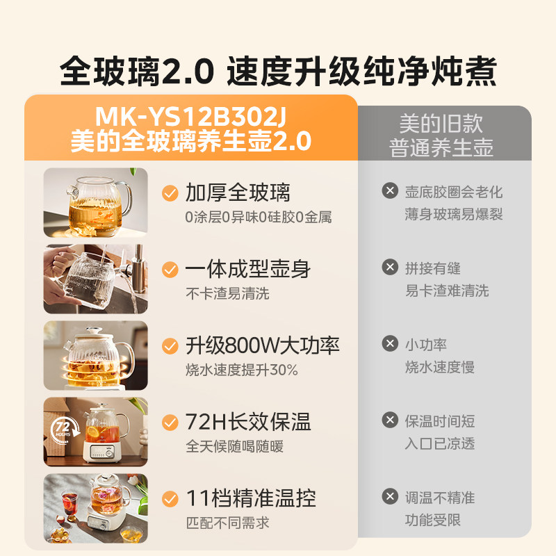 美 全玻璃恒温养生壶家用多功能办公室小型煮茶壶电热水壶纯玻璃