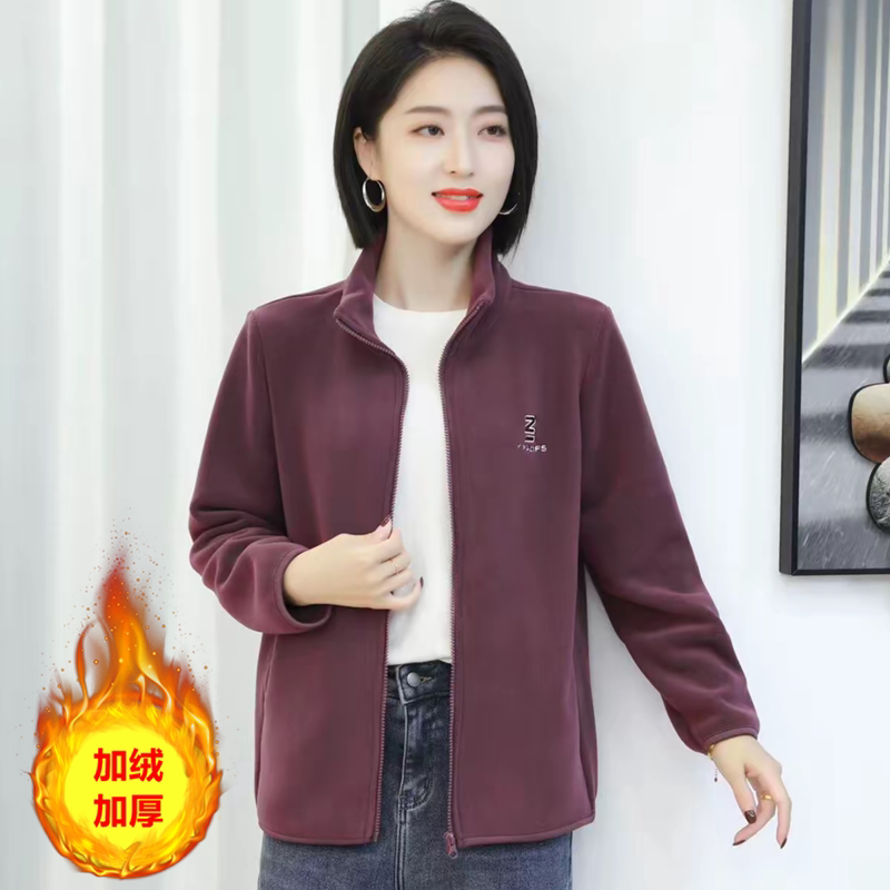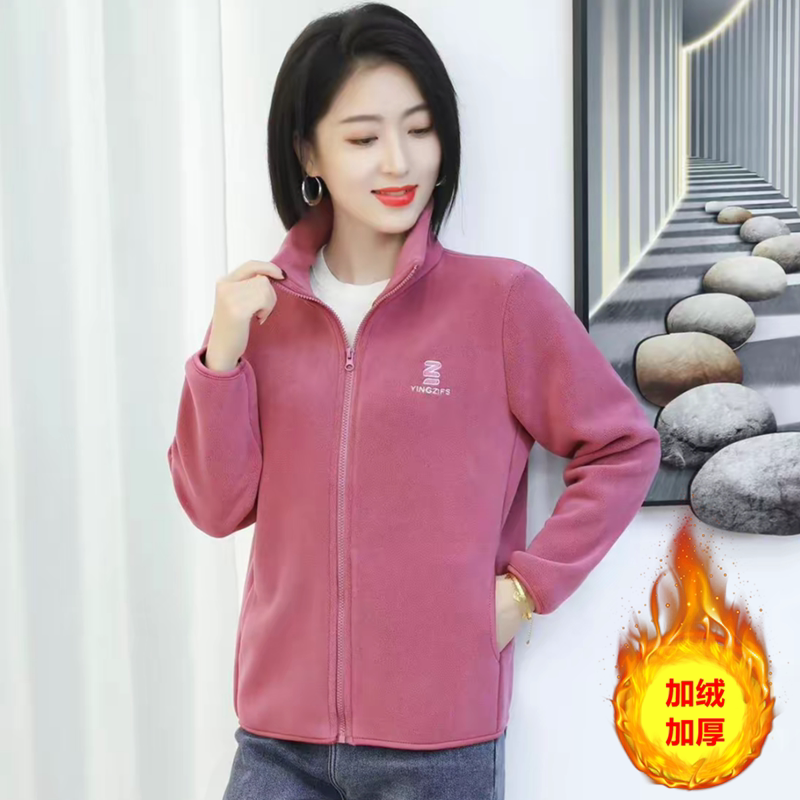 2026新款 羊羔绒夹克女 加厚奥粒绒外套中老年人抓绒卫衣妈妈春秋装