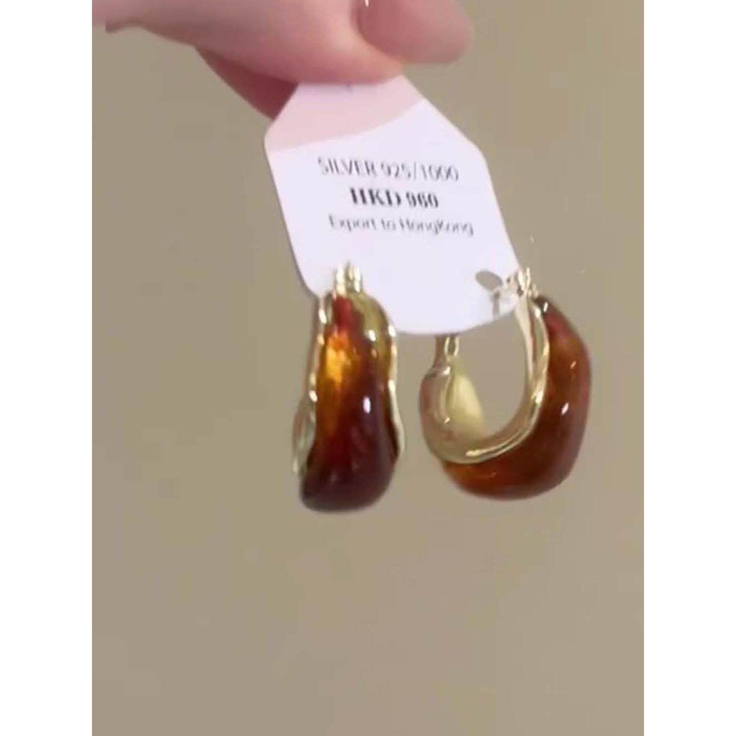 秋冬新款 美拉德琥珀色耳钉女轻奢复古高级感耳饰气质百搭港风耳环