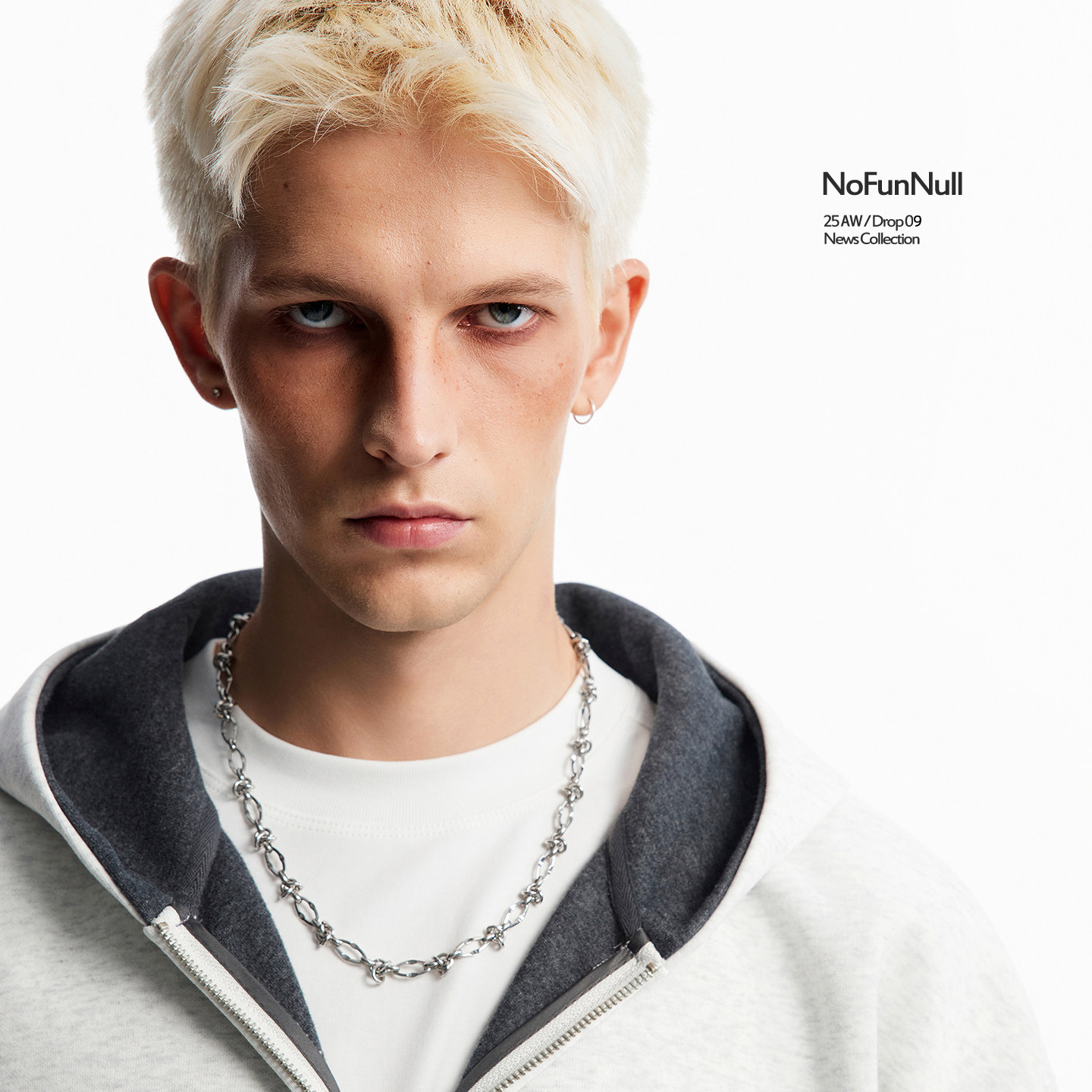 FORNINES重磅刺绣开衫 灰色卫衣男女情侣潮牌秋冬连帽加绒加厚外套