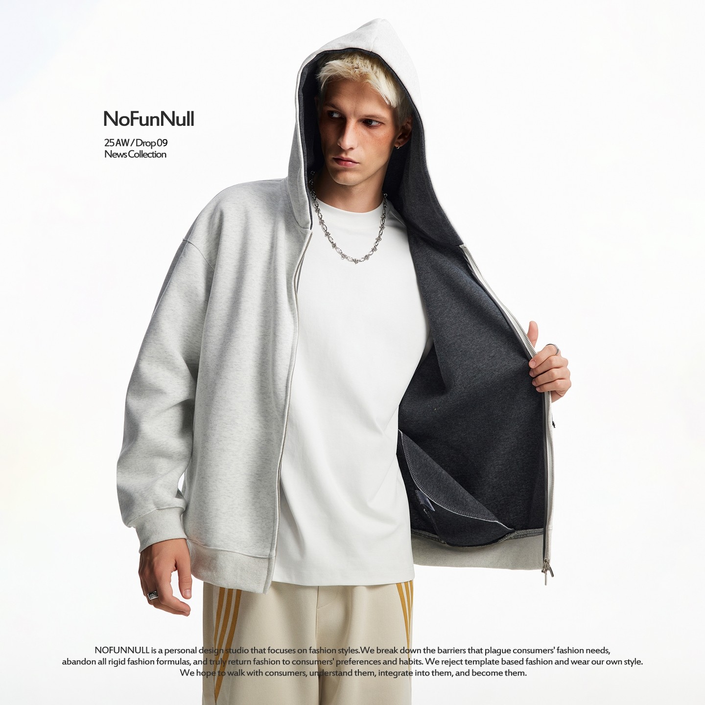 FORNINES重磅拉链卫衣男女潮牌连帽开衫 外套加绒加厚 情侣秋冬美式