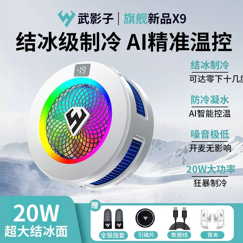 武影子X9智能温控结冰散热器20W大功率超大制冷面手机平板通用