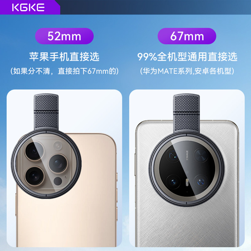 苹果手机偏振镜偏光镜专用摄影滤镜拍照高清晰镜头适用华为iPhone偏振片镜专业cpl52mm夹片拍摄出片辅助神器