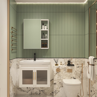 太空铝蜂窝浴室柜组合陶瓷一体盆侧边柜收纳洗漱台卫生间洗手盆柜