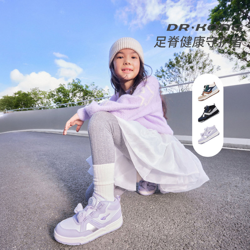 加绒保暖 耐磨2025冬旋钮扣男女儿童运动鞋 Dr.Kong江博士童鞋 板鞋