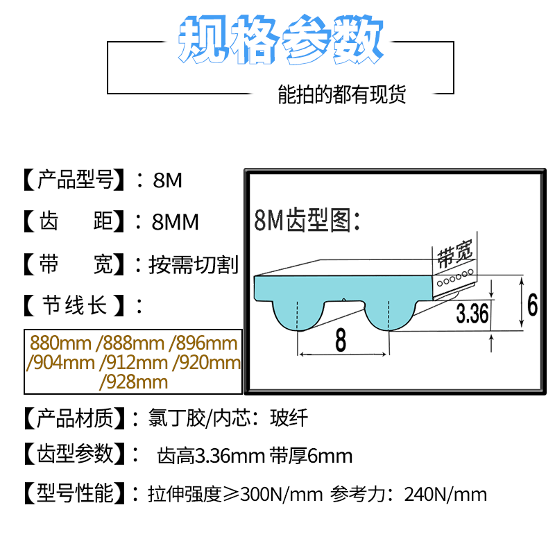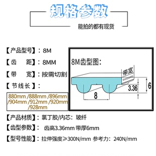 904 896 912 920 8YU绣花机配件皮带 橡胶同步带8M 928 880S888