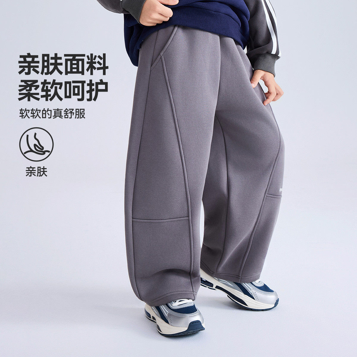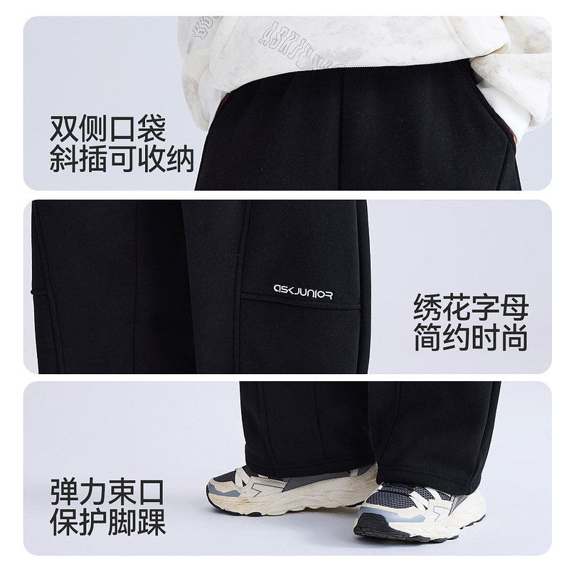 运动裤 男童加绒卫裤 子2025秋冬新款 ask新年拜年服儿童裤