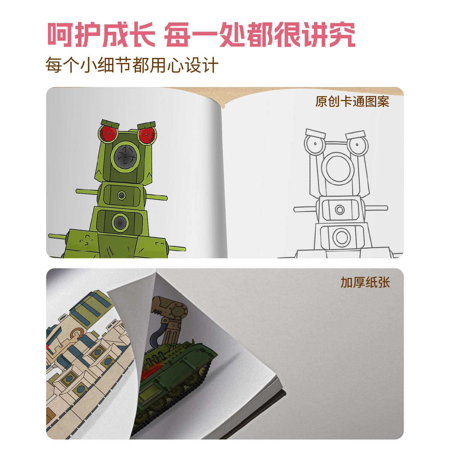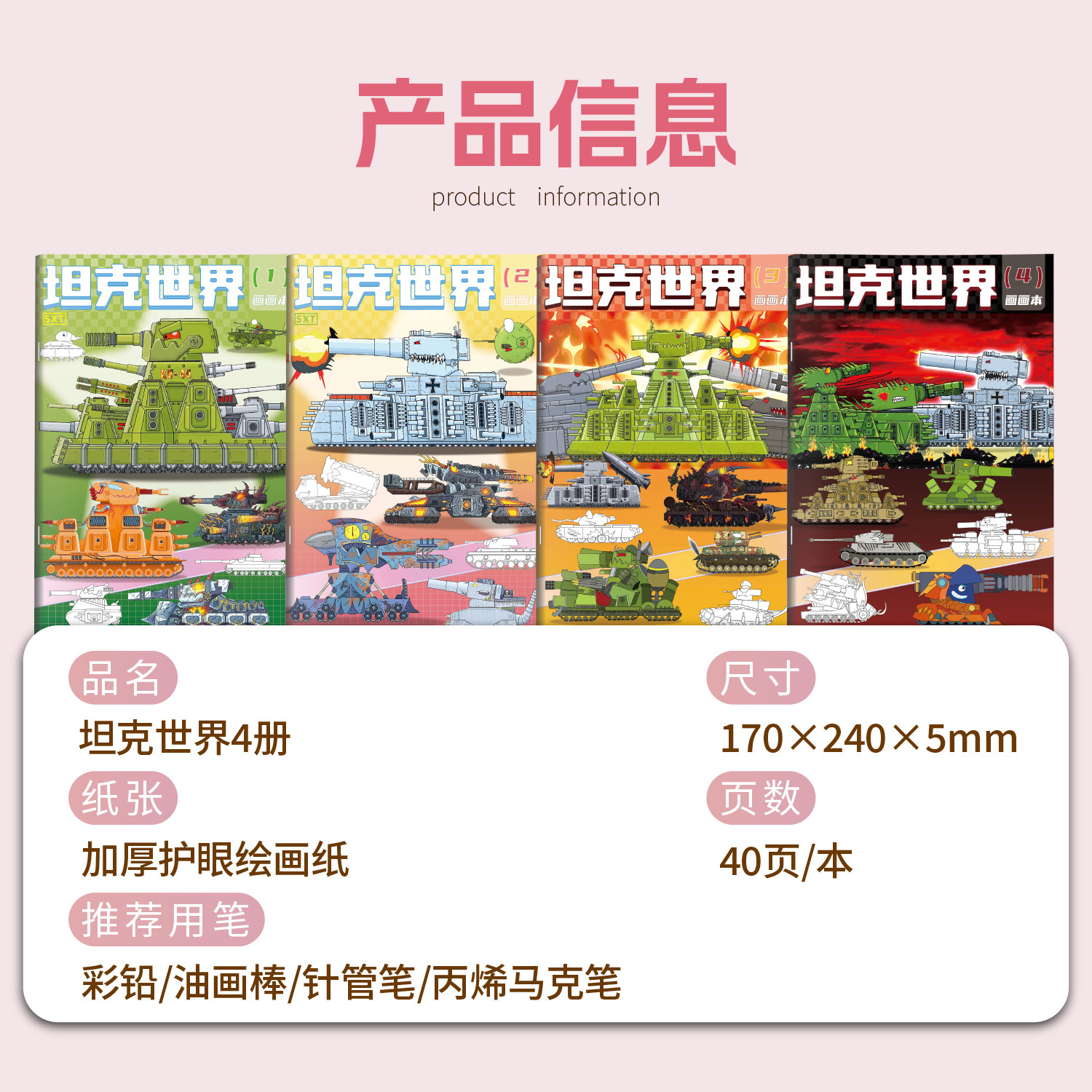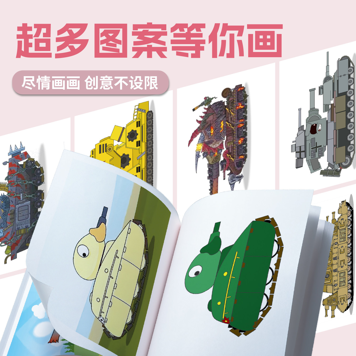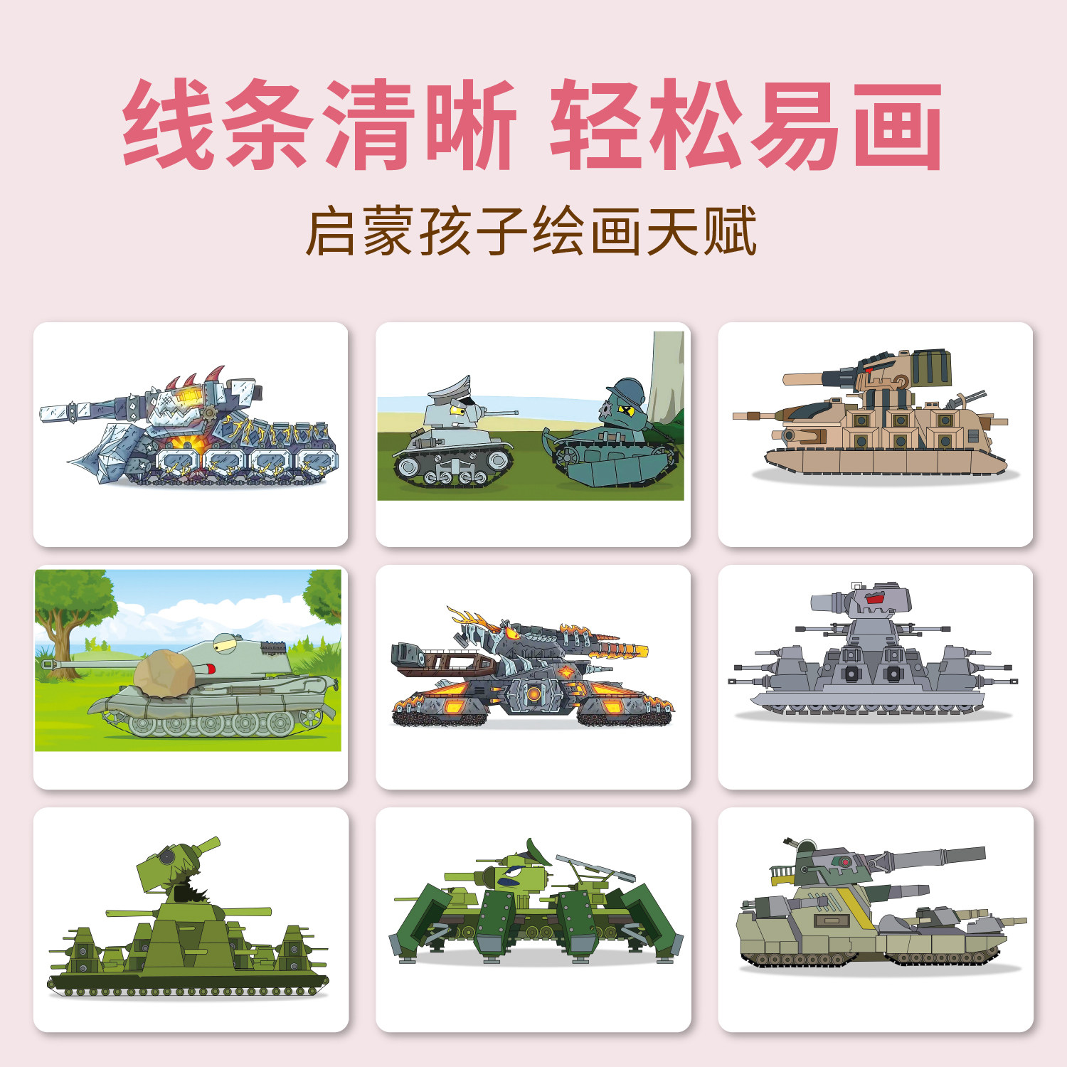 KV44坦克世界描摹本军事模型卡通线稿3 6岁儿童涂色描线本益智临摹素描本幼儿园专用涂鸦画册男孩基础画画本