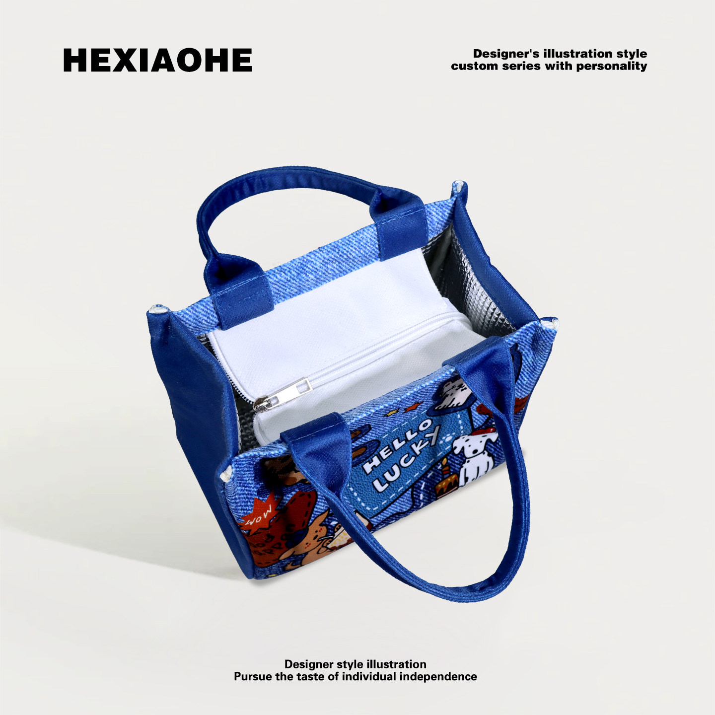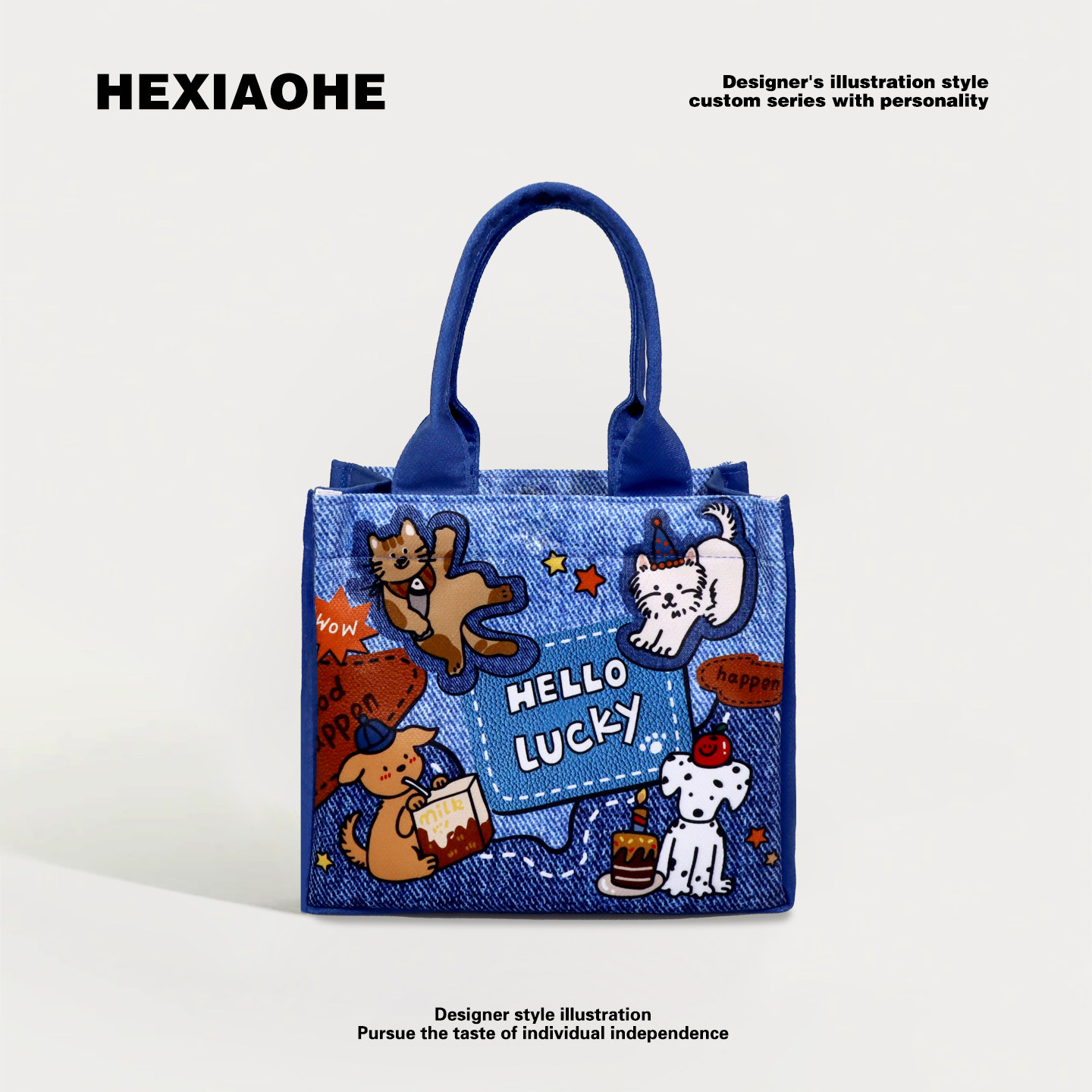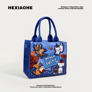 卡通学生饭盒保温包大容量手提包儿童便当包上班小拎包通勤托特包