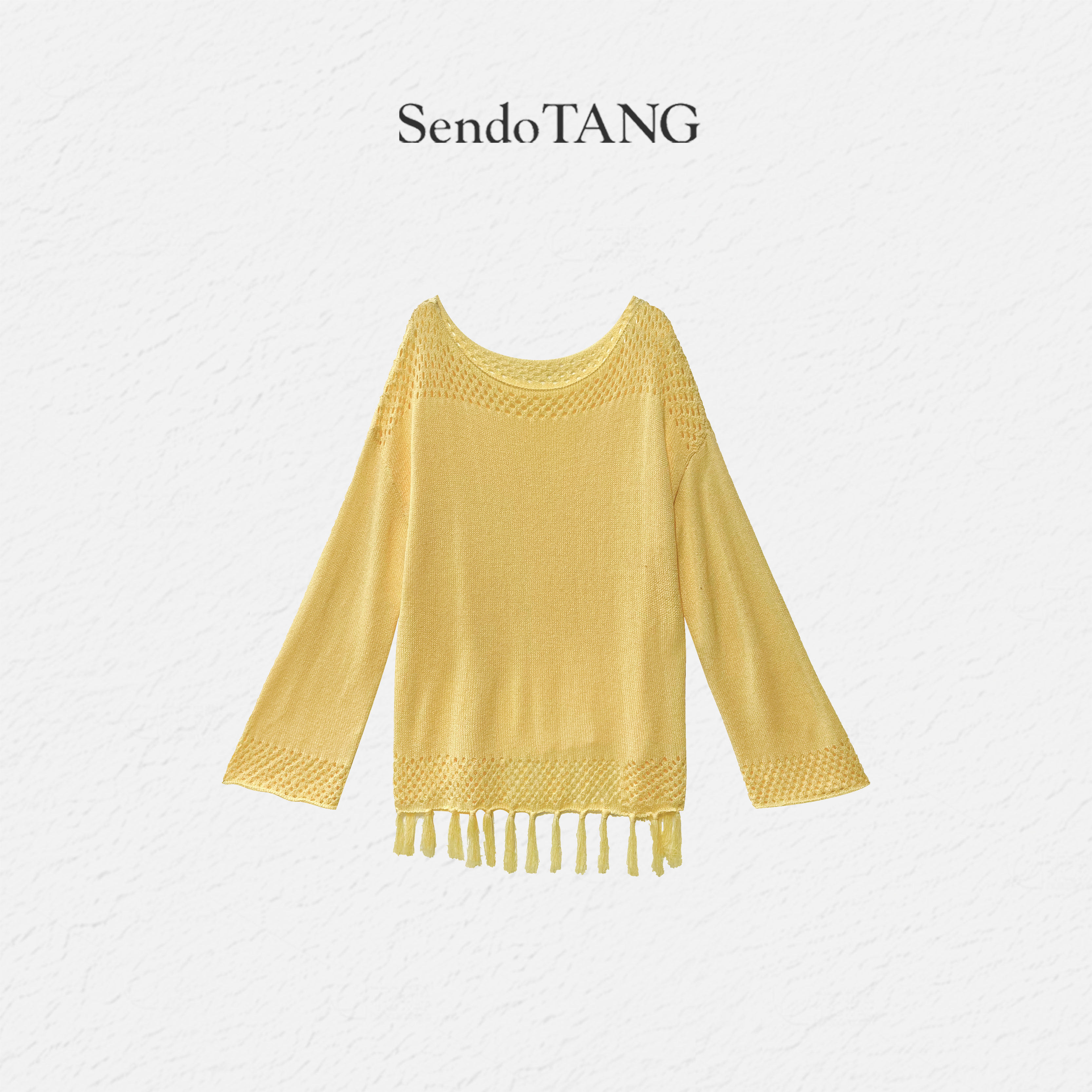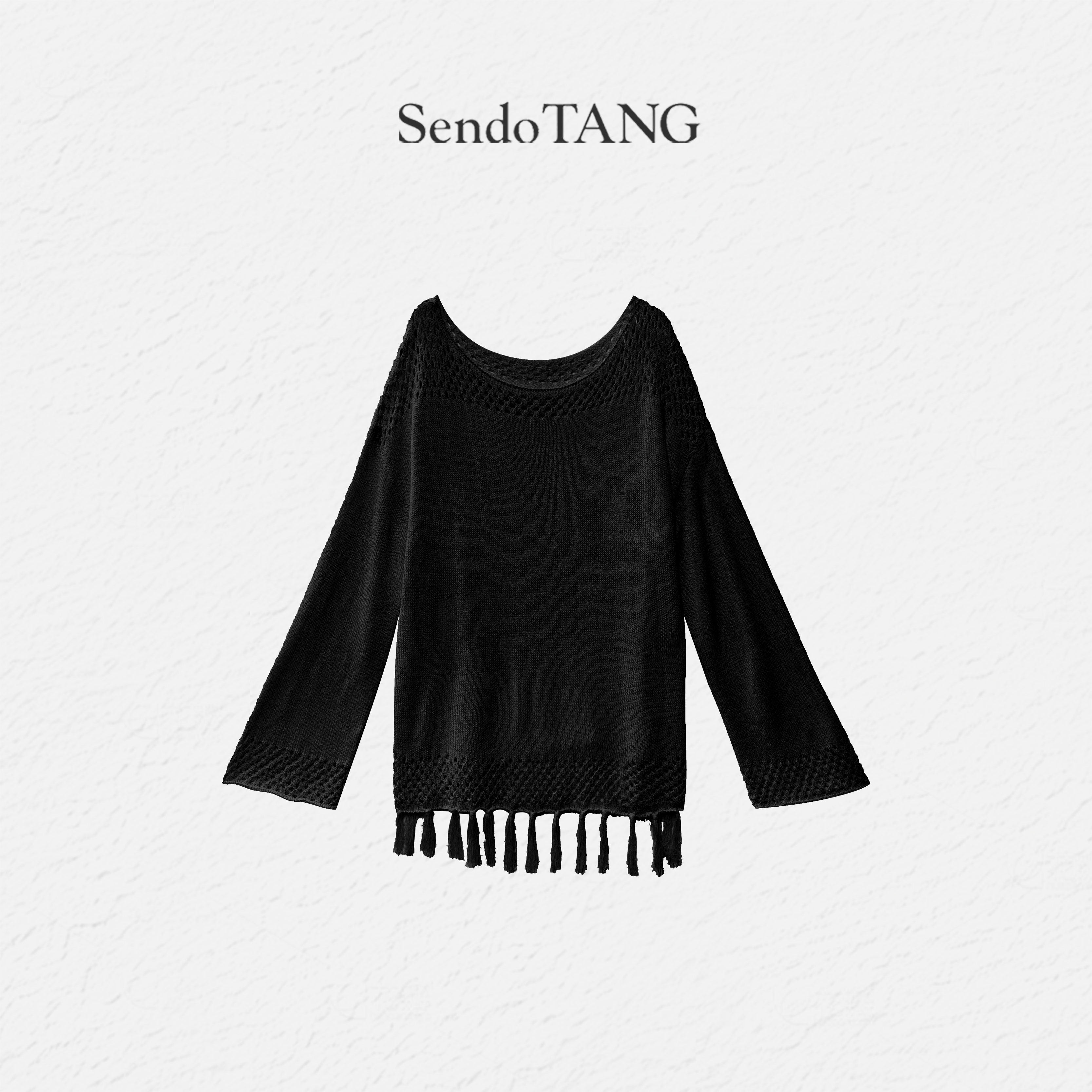 新款 长袖 胖多女装 甜蜜暴击 百搭上衣 镂空下摆流苏条设计针织衫
