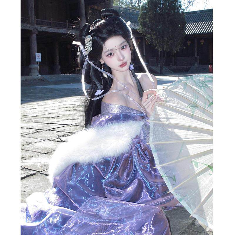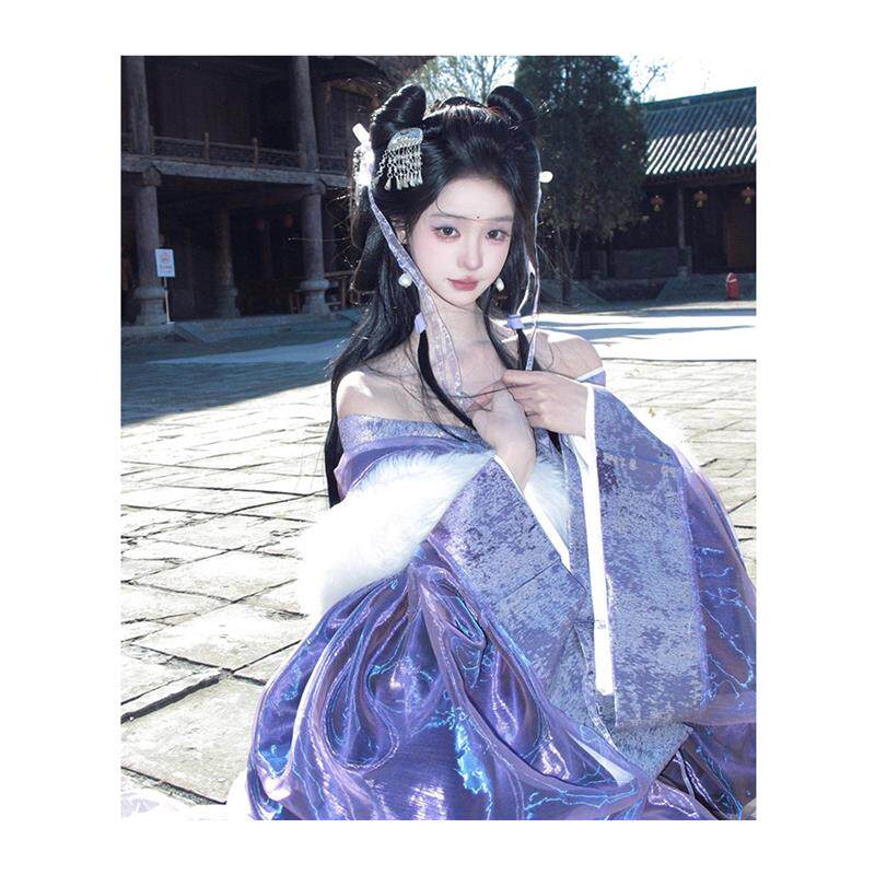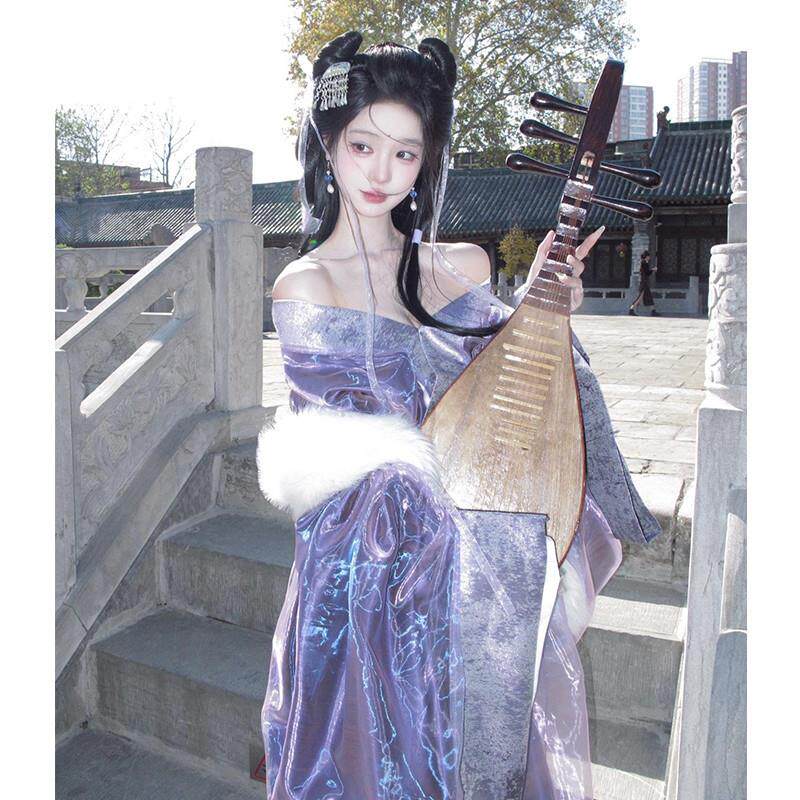 古风舞蹈演出服襦裙套装 紫色战国袍汉服2025新款 衫 直裾大袖 冬 古装