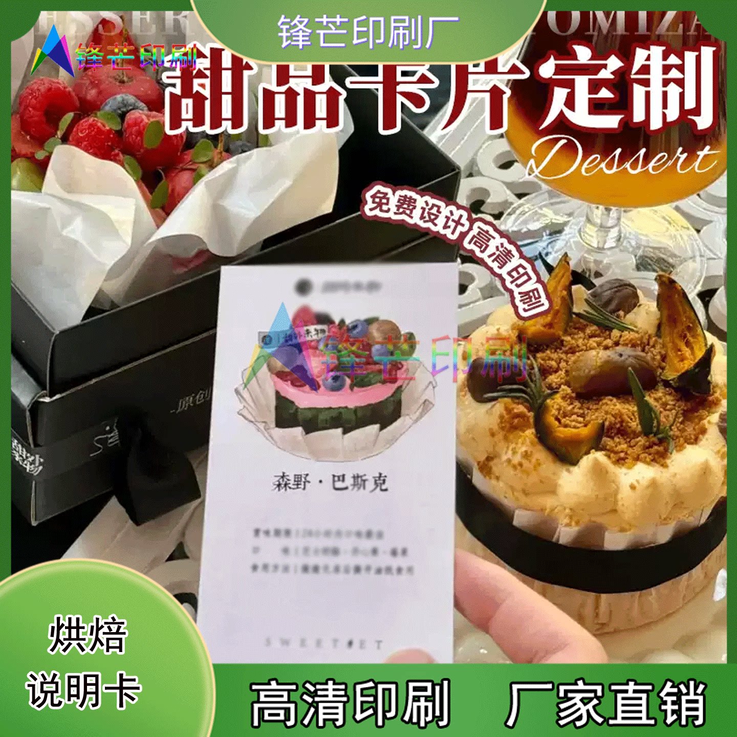 定制黑莓小蛋糕烫黑金异型卡片瑞士卷包装 盒烫激凸异型贴纸印刷