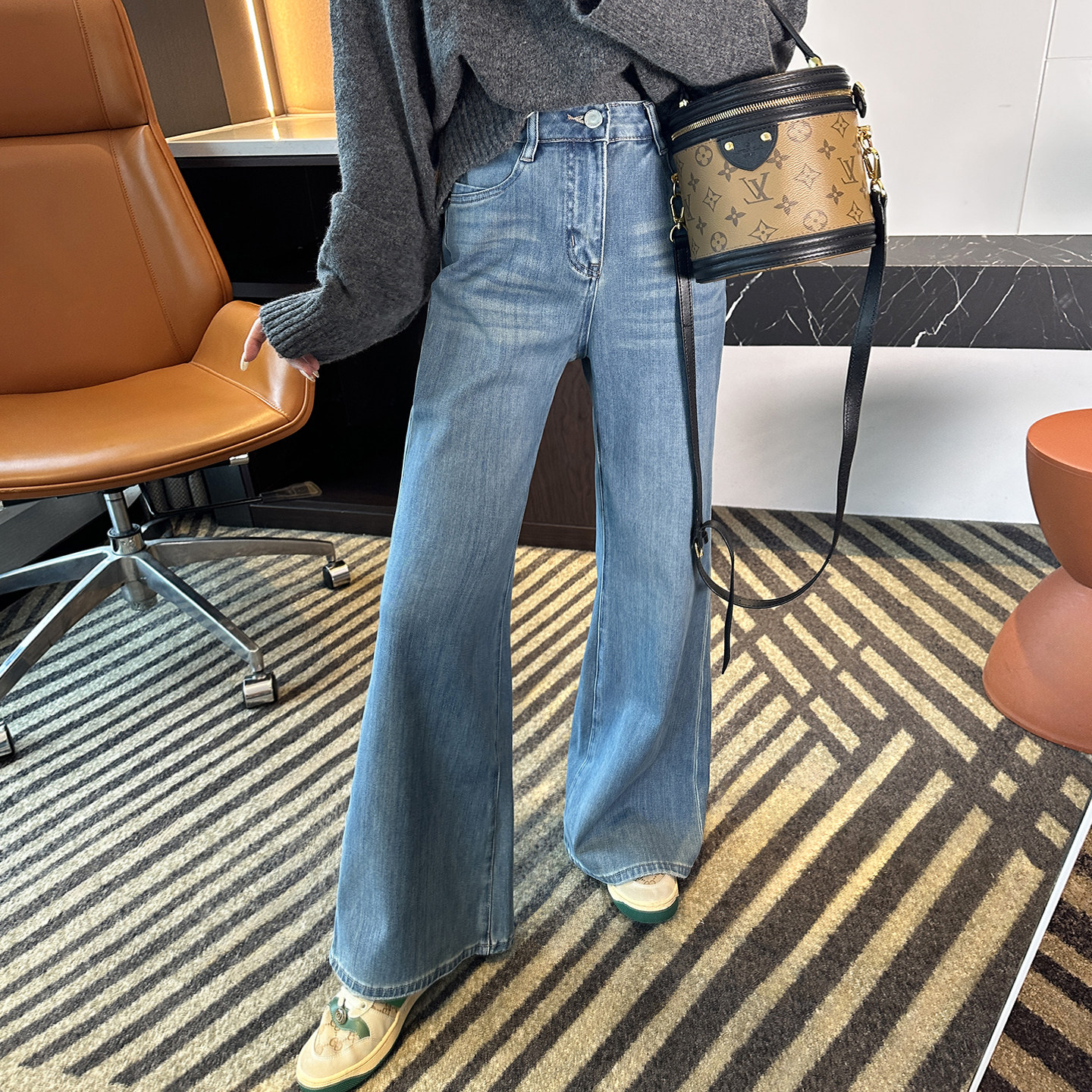 女2025秋新高腰宽松拖地裤 梨型天命神裤 四面弹阔腿喇叭牛仔裤