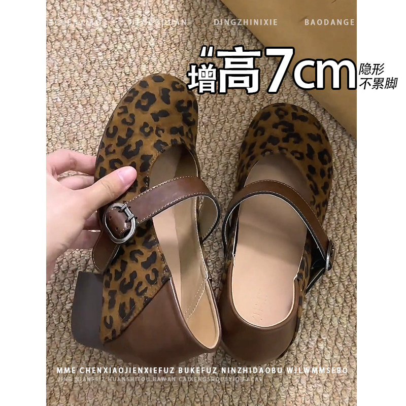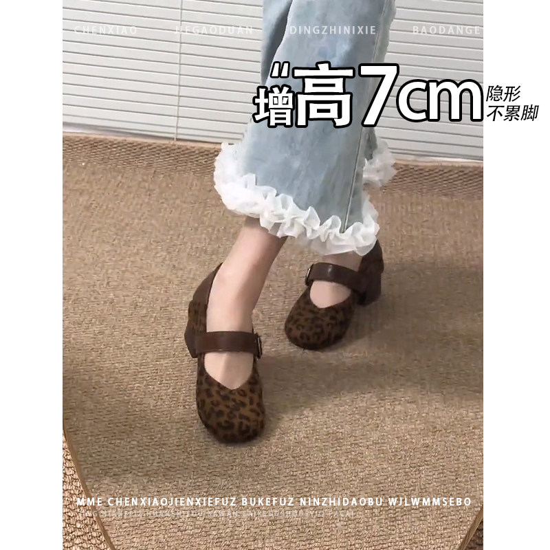 粗跟浅口豹纹单鞋 2026秋法式 女 小个子内增高7CM玛丽珍鞋 不累脚