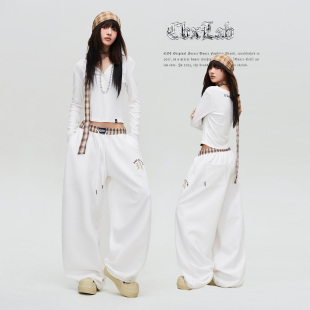 潮 辣妹运动裤 CBXLAB街舞潮牌格子撞色腰头云朵软乎乎嘻哈长裤 美式