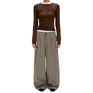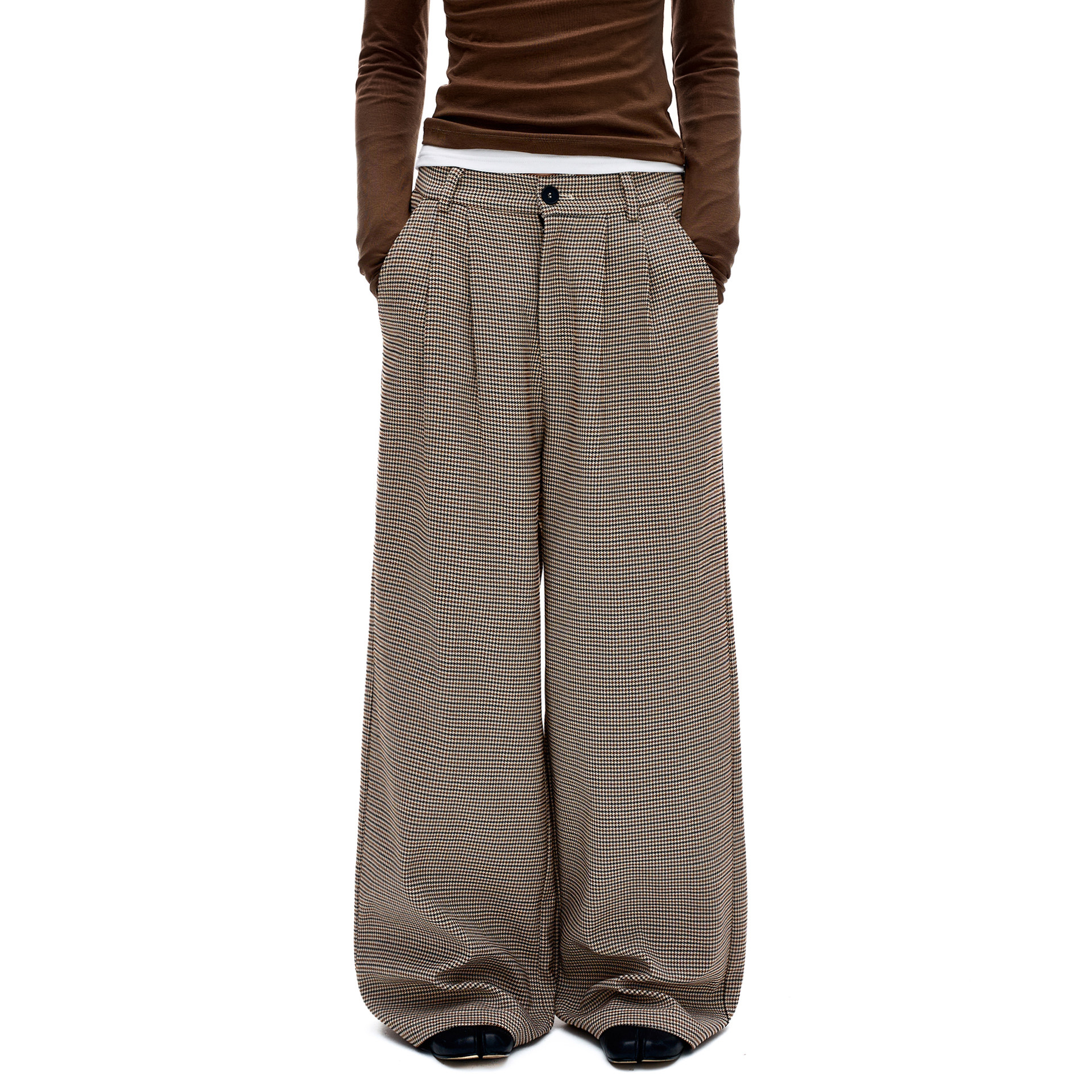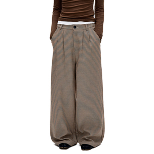 MADWITCH复古老钱风千鸟格设计休闲裤 男女宽松休闲vintage垂感裤