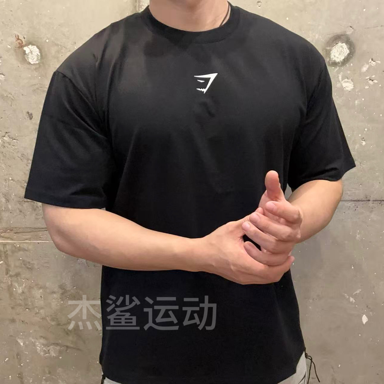 克里斯合作GYM鲨鱼THARK后背字母男女运动休闲宽松圆领棉质短袖