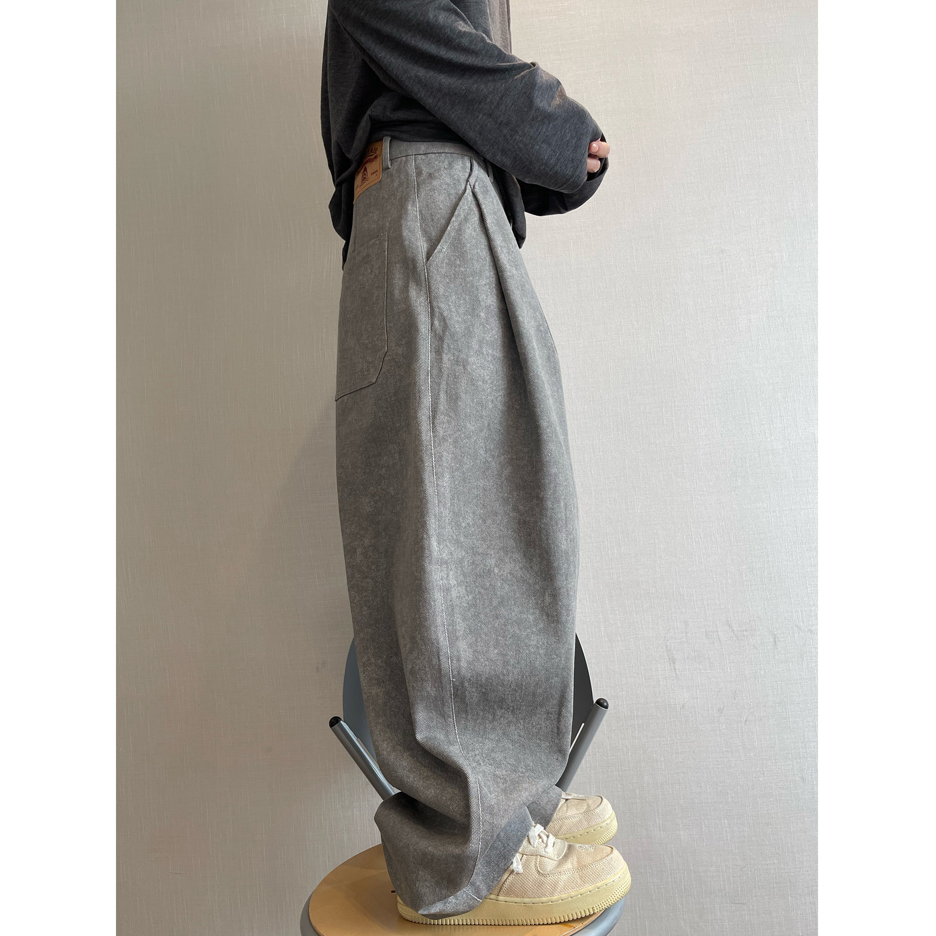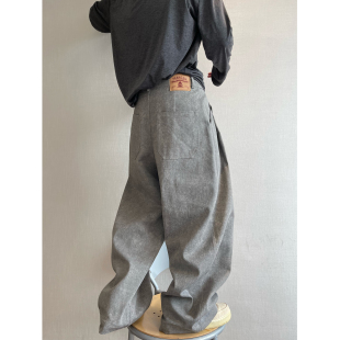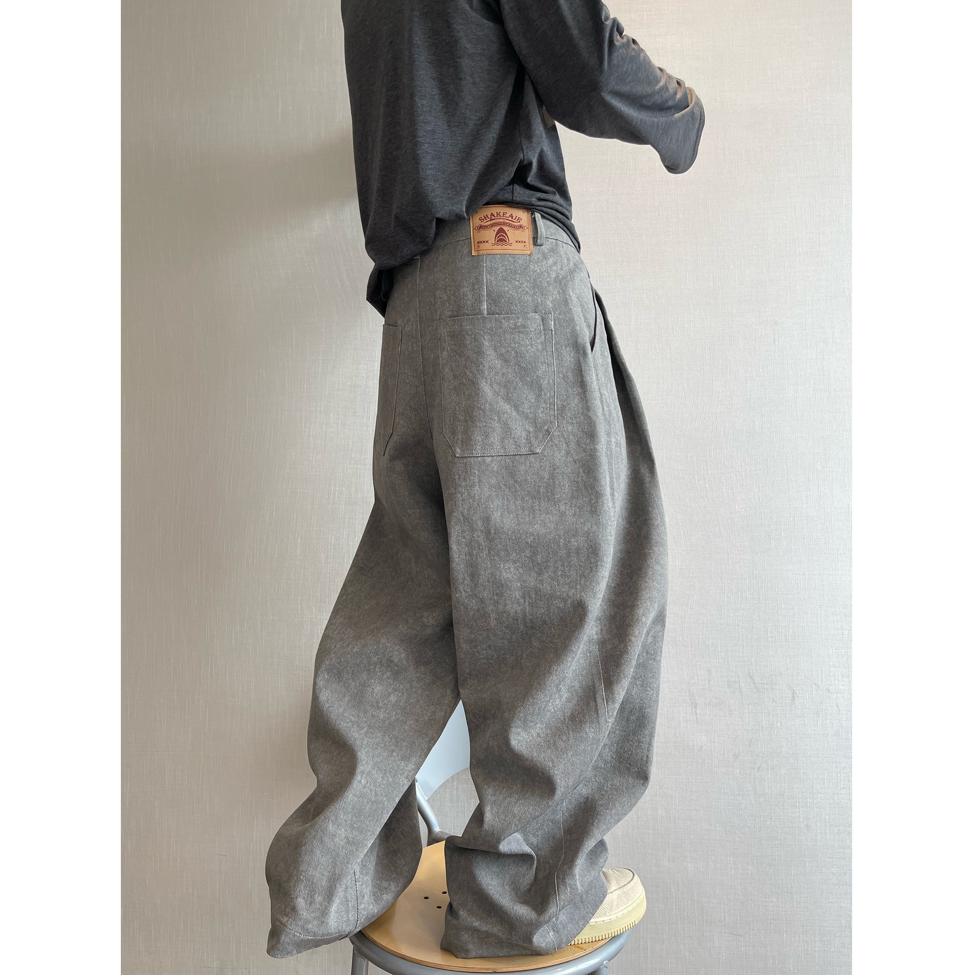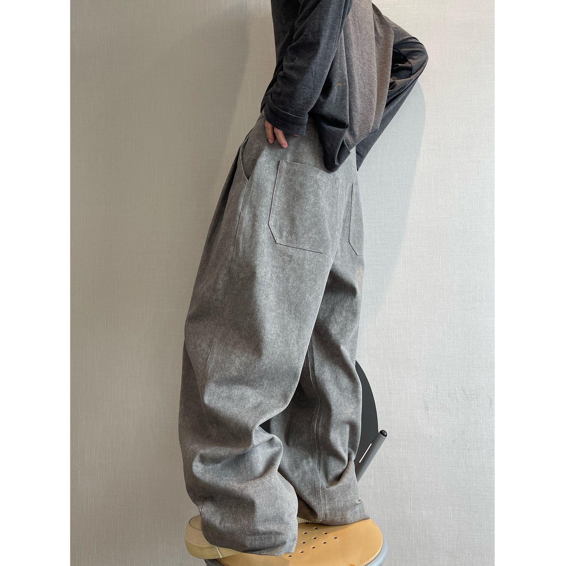 男 裤 dannyandzee春季 复古重水洗水泥色扎染灰色廓形宽松帆布工装