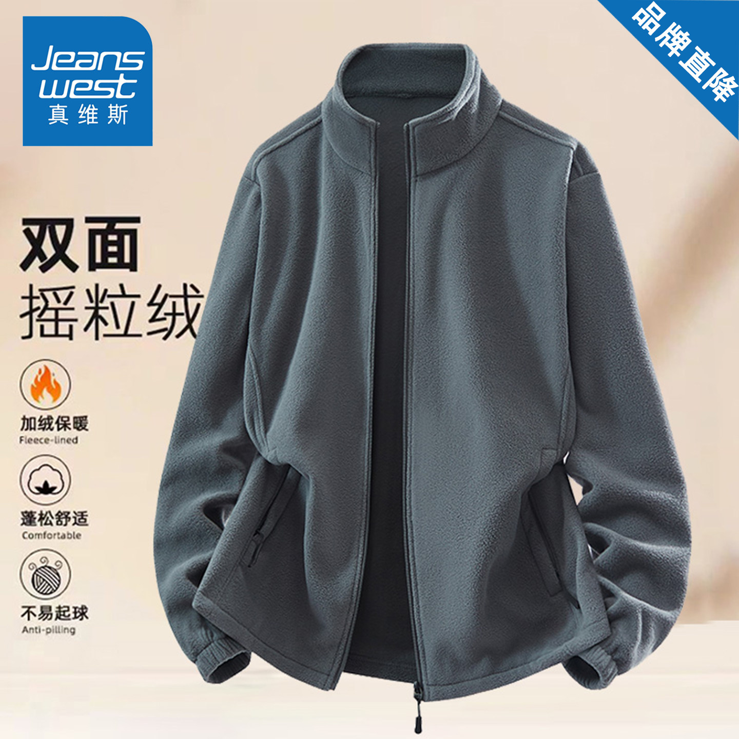 真维斯抓绒外套男款 加绒加厚冲锋衣内胆立领摇粒绒百搭卫衣 秋冬季