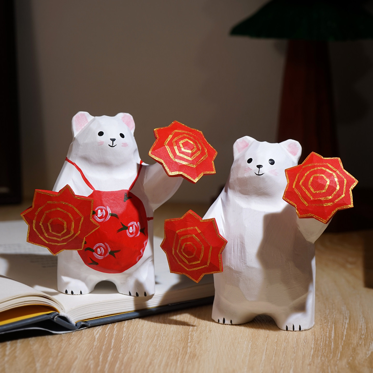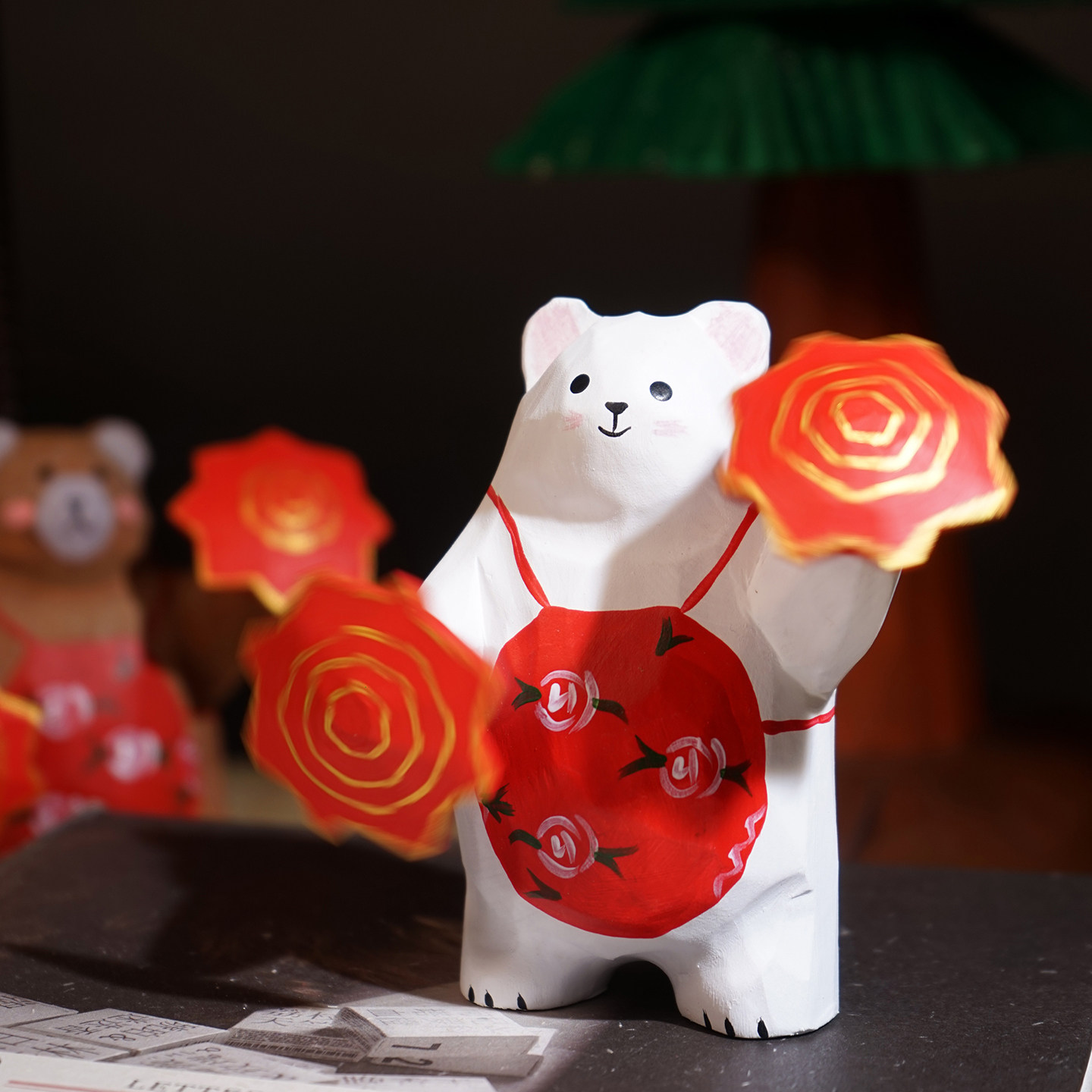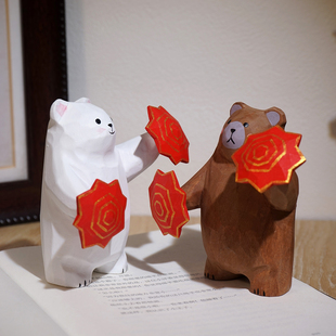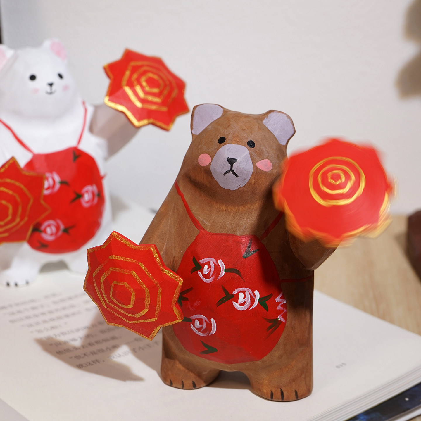 手工木雕小摆件可爱创意转手绢趣味东北文创礼物 小熊二人转