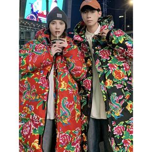 华人青年基础logo拼接棉服外套潮牌情侣休闲保暖立领棉衣面包服