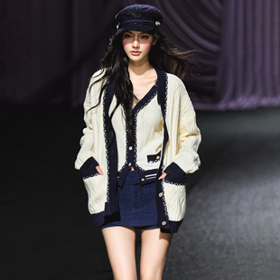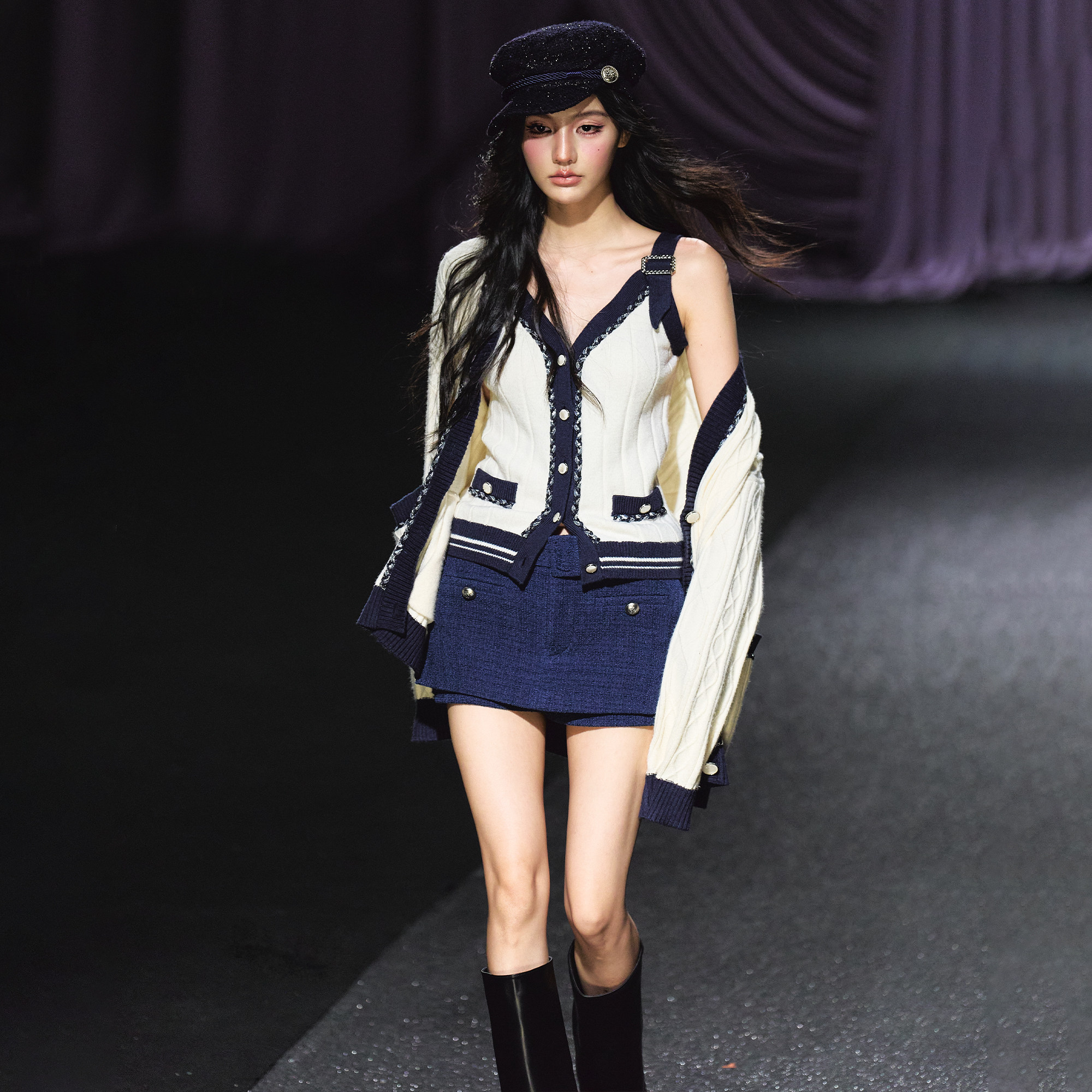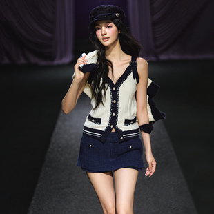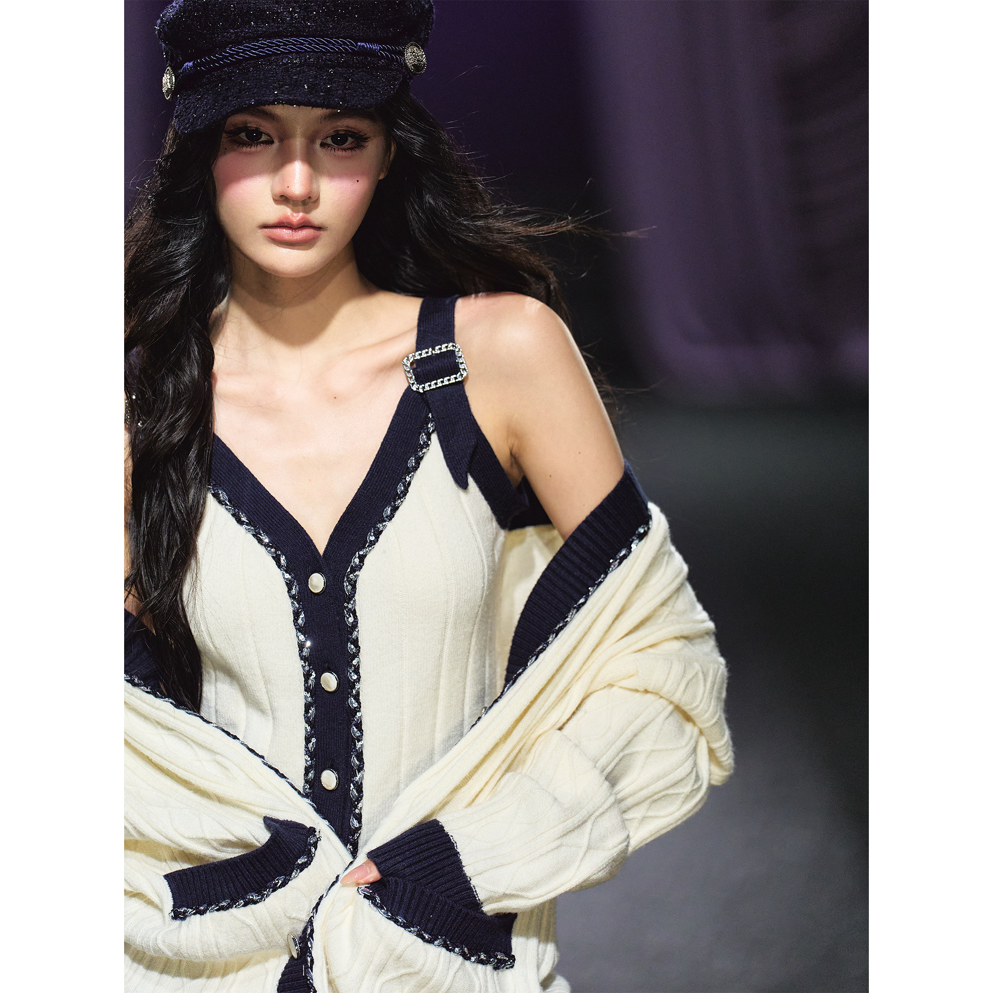 宽松高级感V领背心两件套 女套装 AGAM 软糯亲肤小香风撞色针织开衫