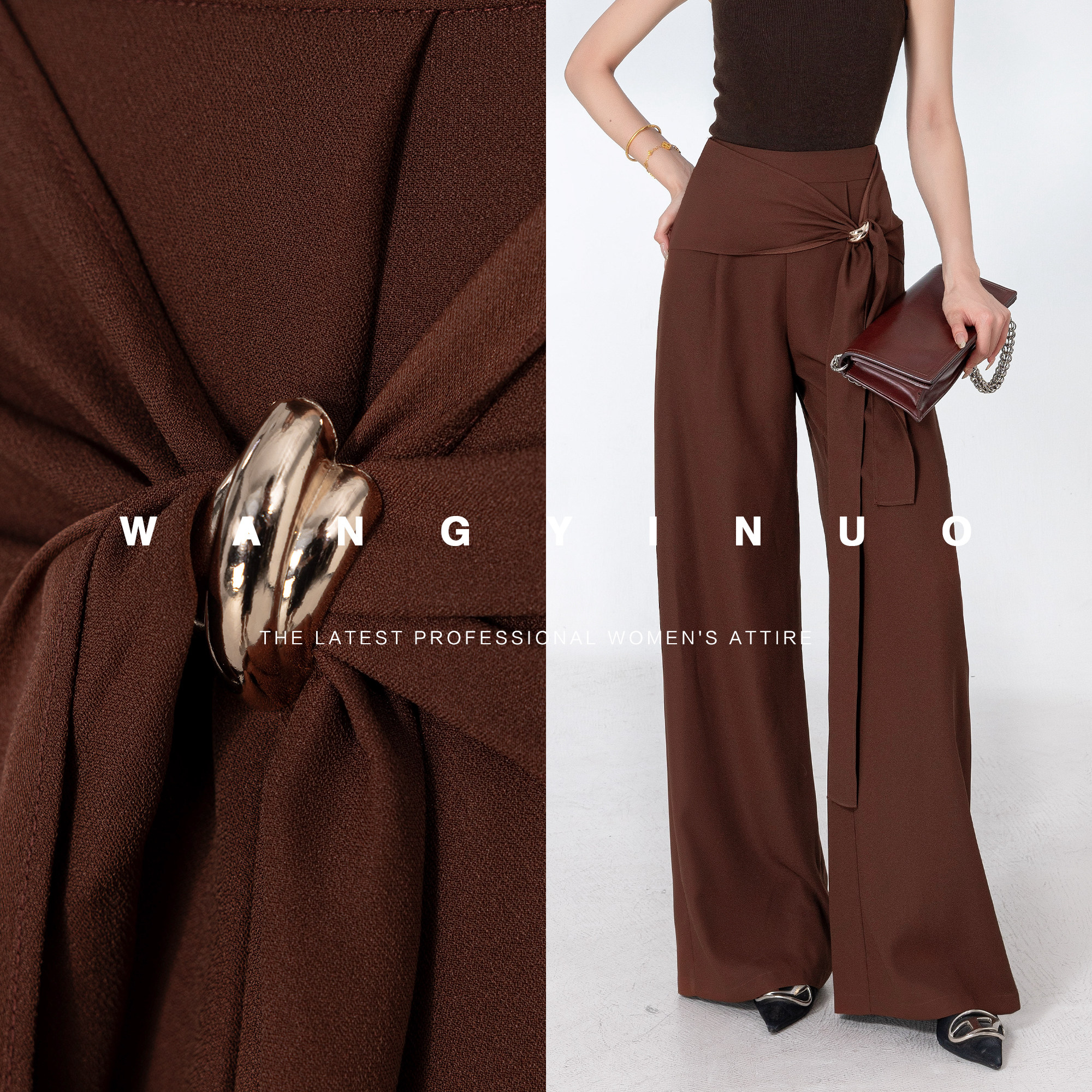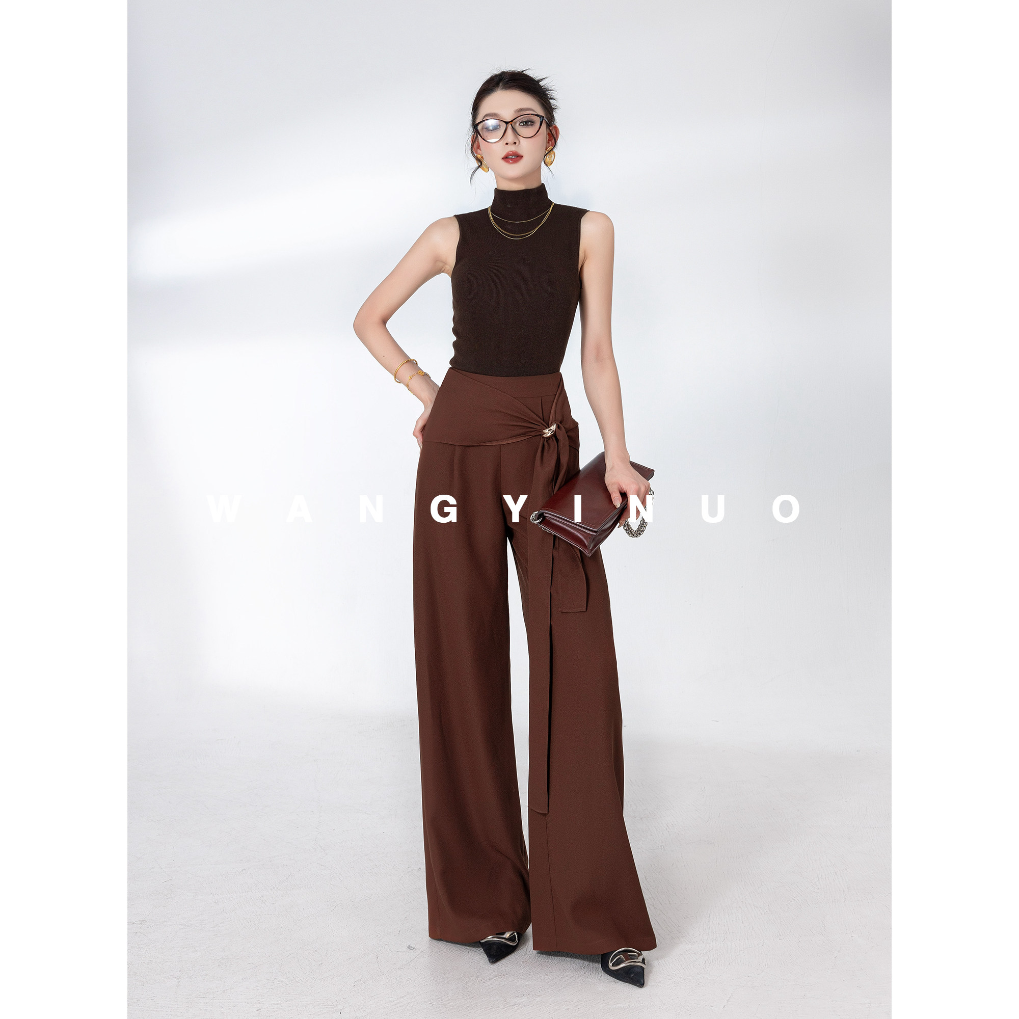 艺术笔触 休闲裤 2025秋季 高腰通勤时尚 子 穿搭垂感阔腿裤 MD依诺