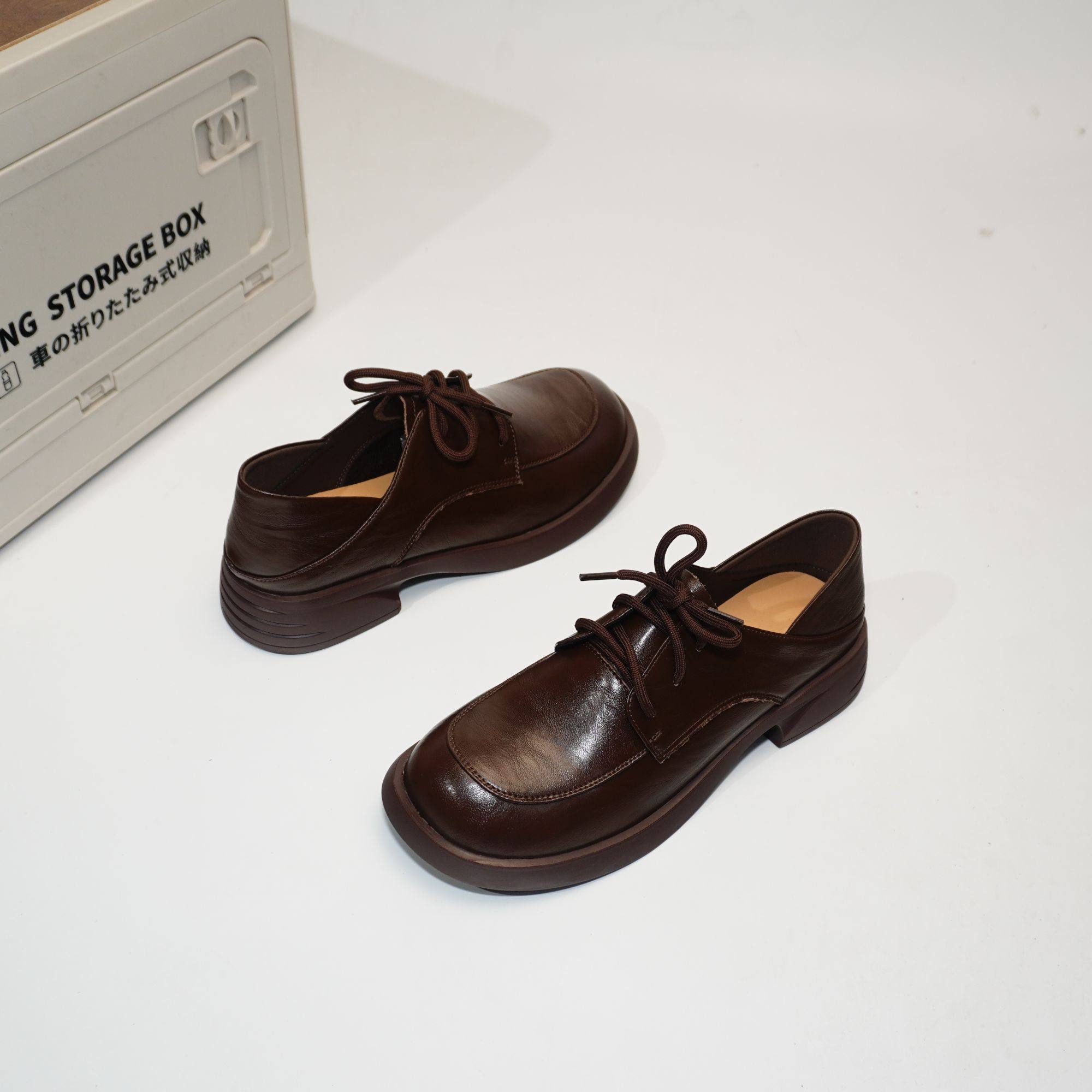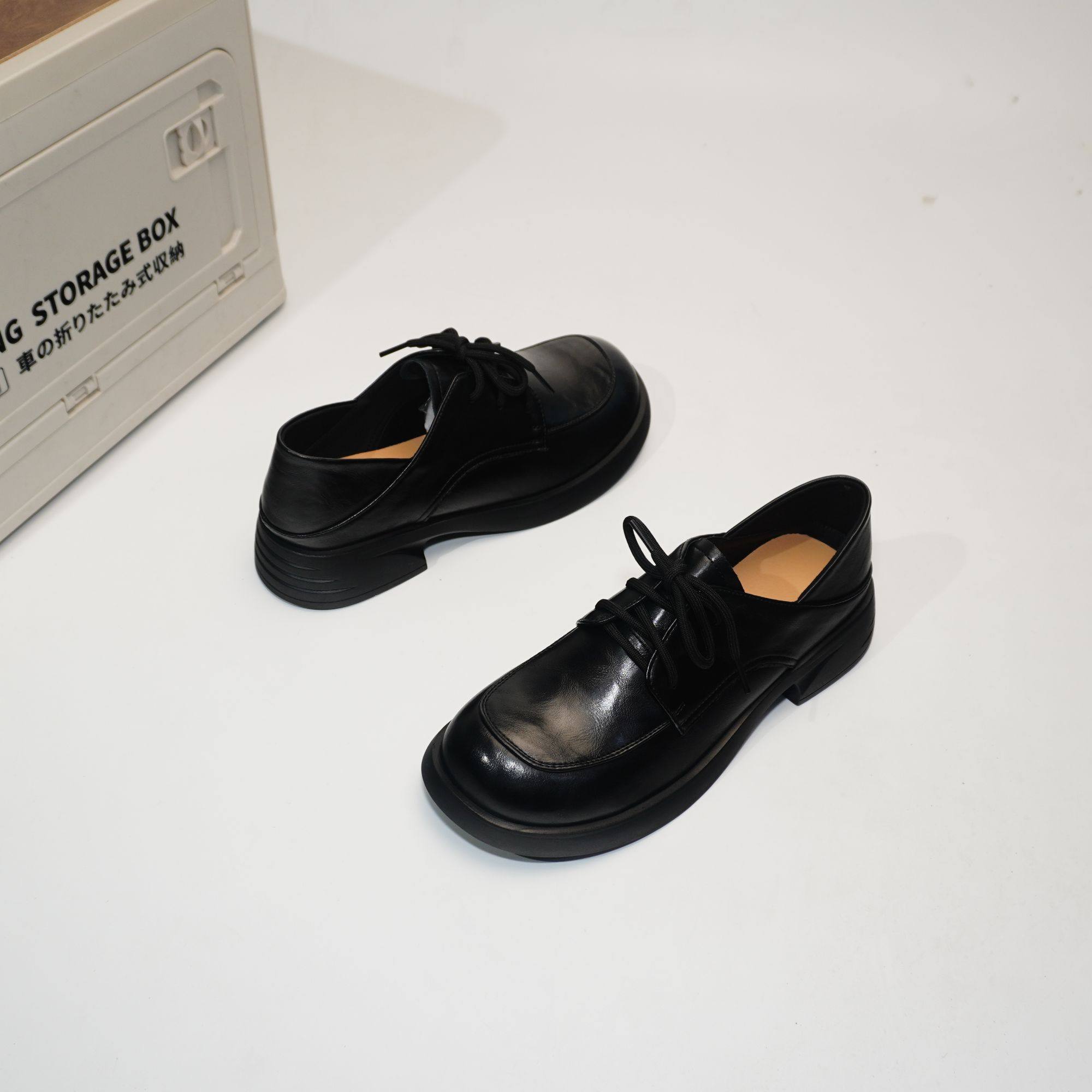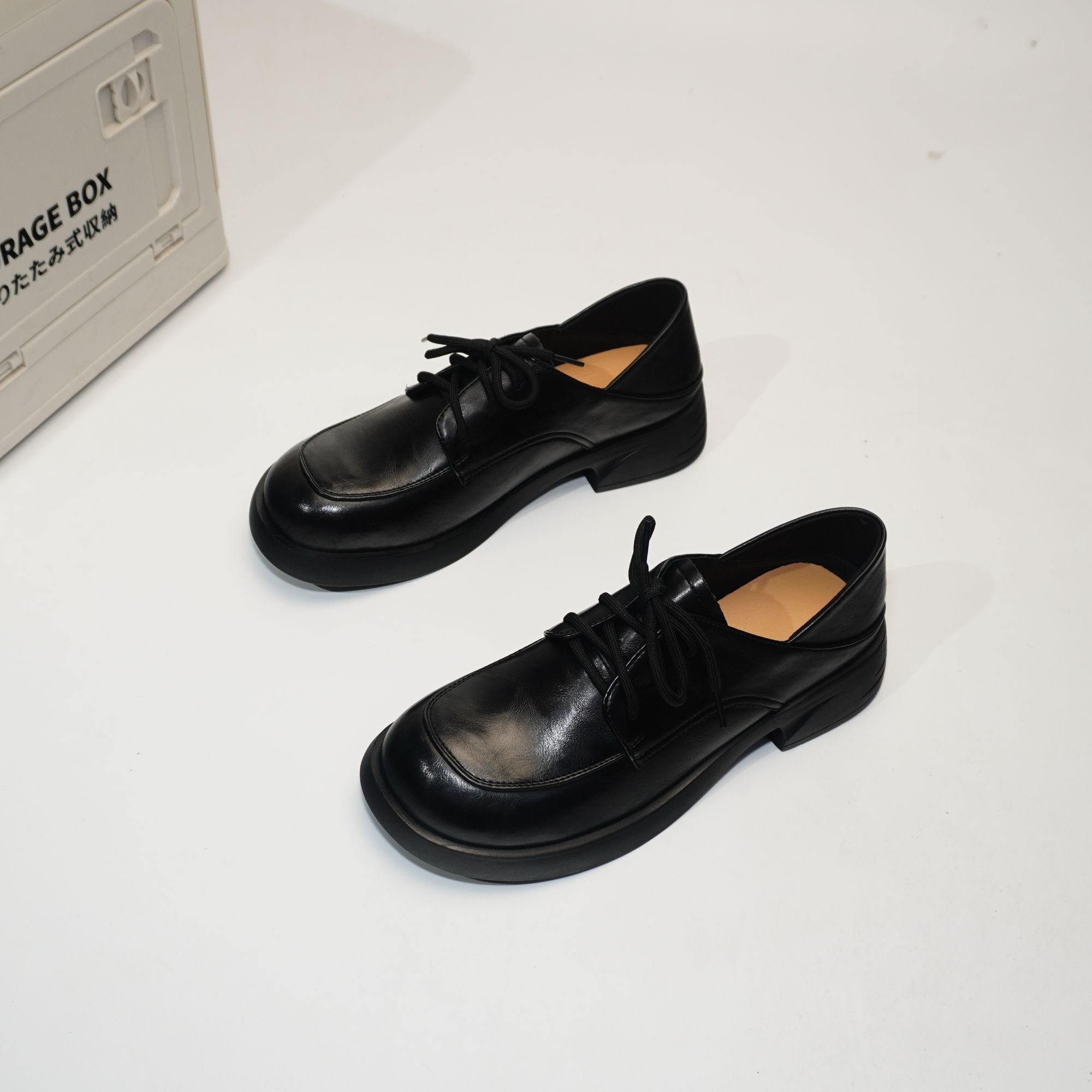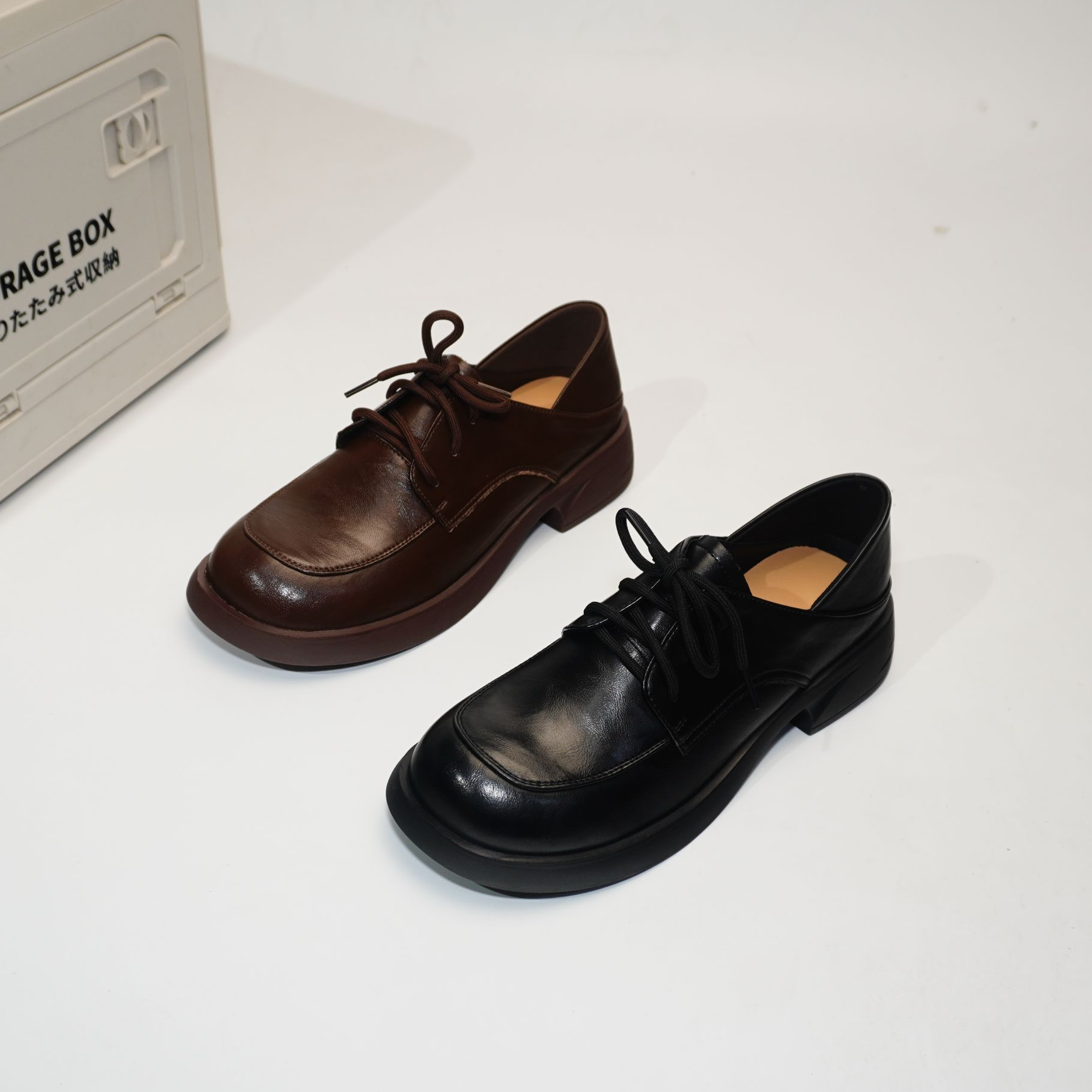 女鞋 43新款 秋百搭英伦风圆头系带低跟乐福鞋 8527 粗跟皮鞋 大码