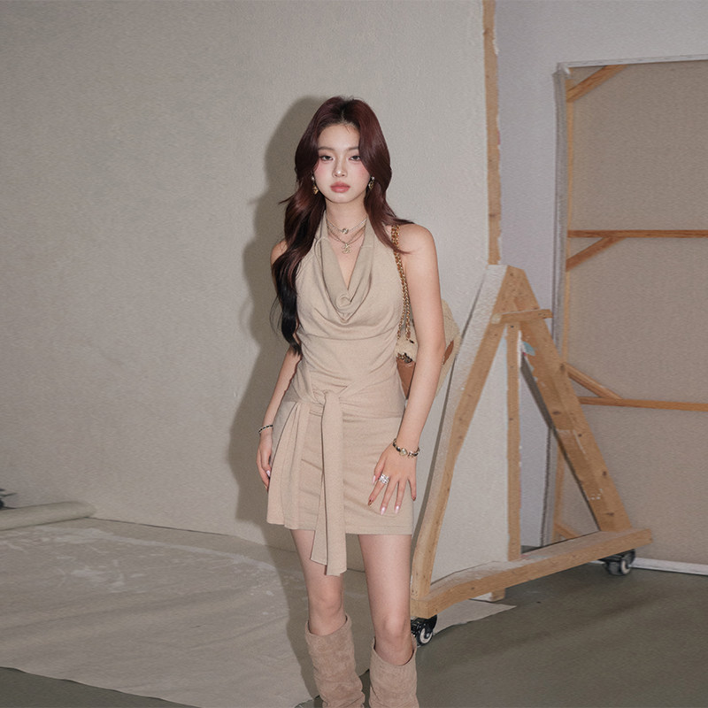 DUO挂脖荡领连衣裙性感纯欲显瘦高级感收腰连衣裙 OLIVIA 现货