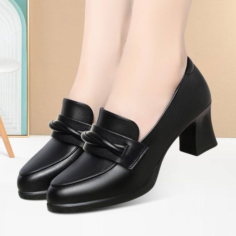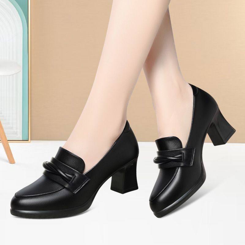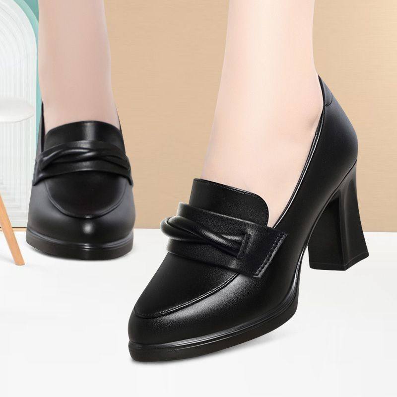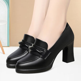 防水台高跟鞋 舒适粗跟低帮深口单鞋 时尚 新款 软皮旗袍走秀耐磨女鞋