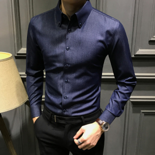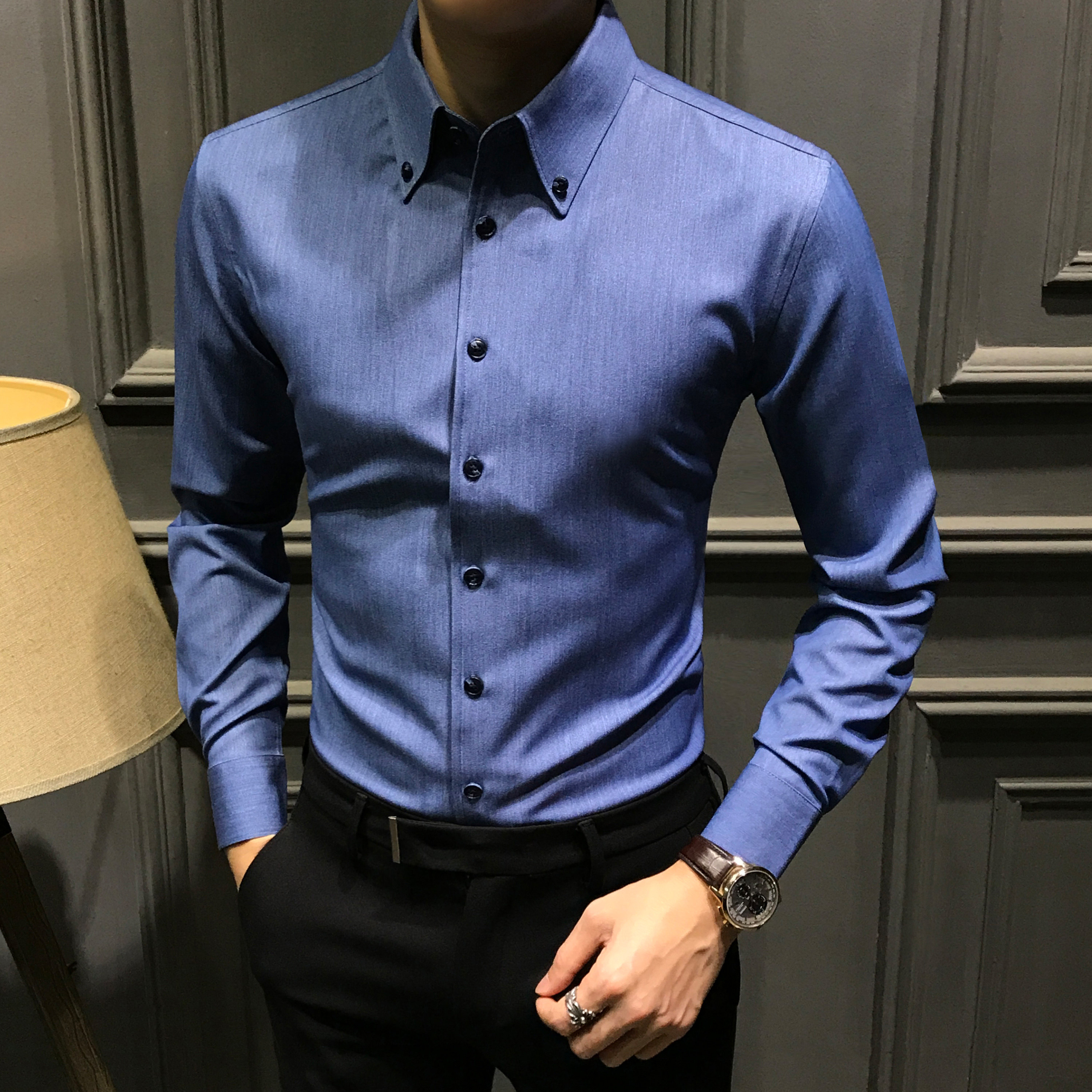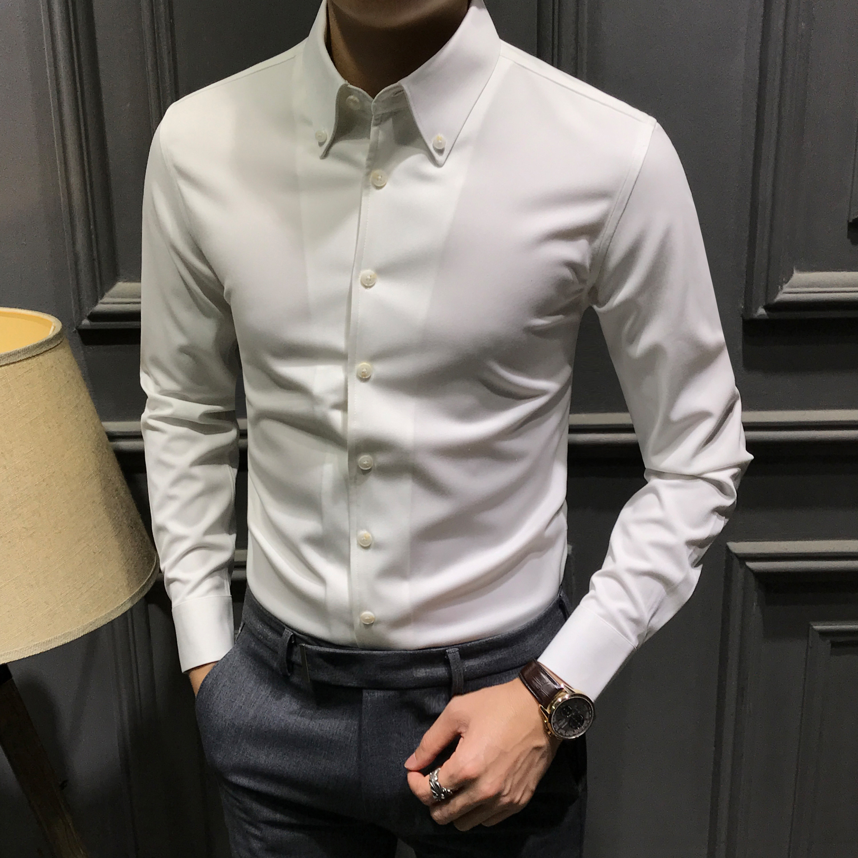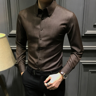 男长袖 衬衣潮流商务免烫男装 秋季 纯色帅气修身 上衣 新款 高级灰衬衫