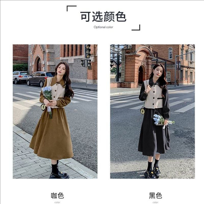 安妮不火赫本风拼接连衣裙女2025秋冬新款 小众假两件裙子 微胖大码