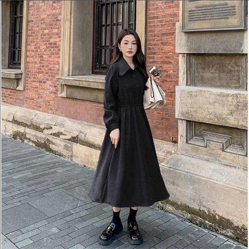 纯欲连衣裙高领长袖 法式 打底裙性感气质大摆短裙 女装 300斤特大码