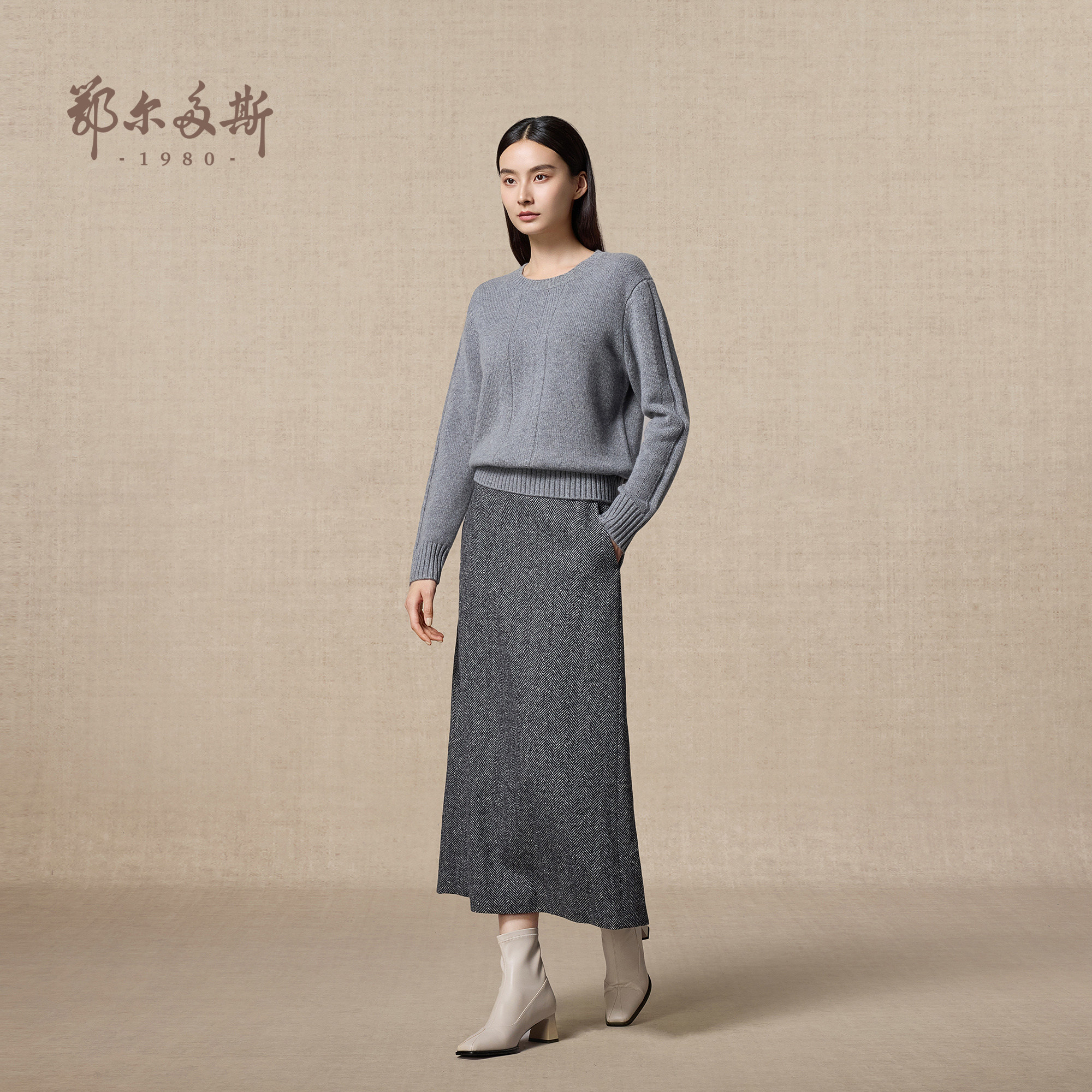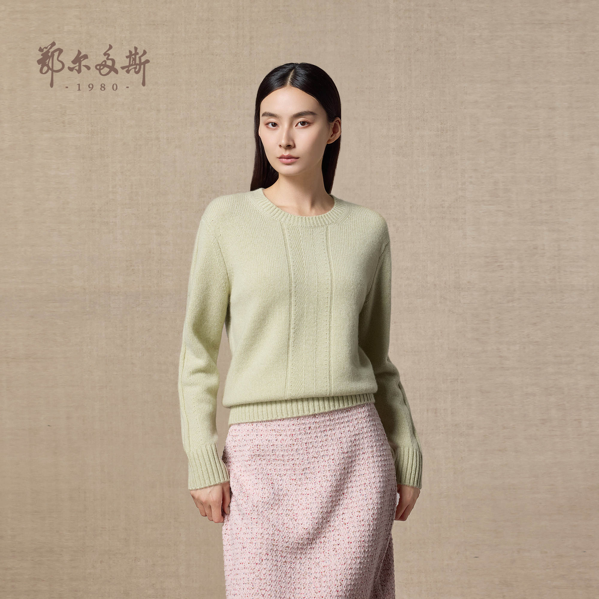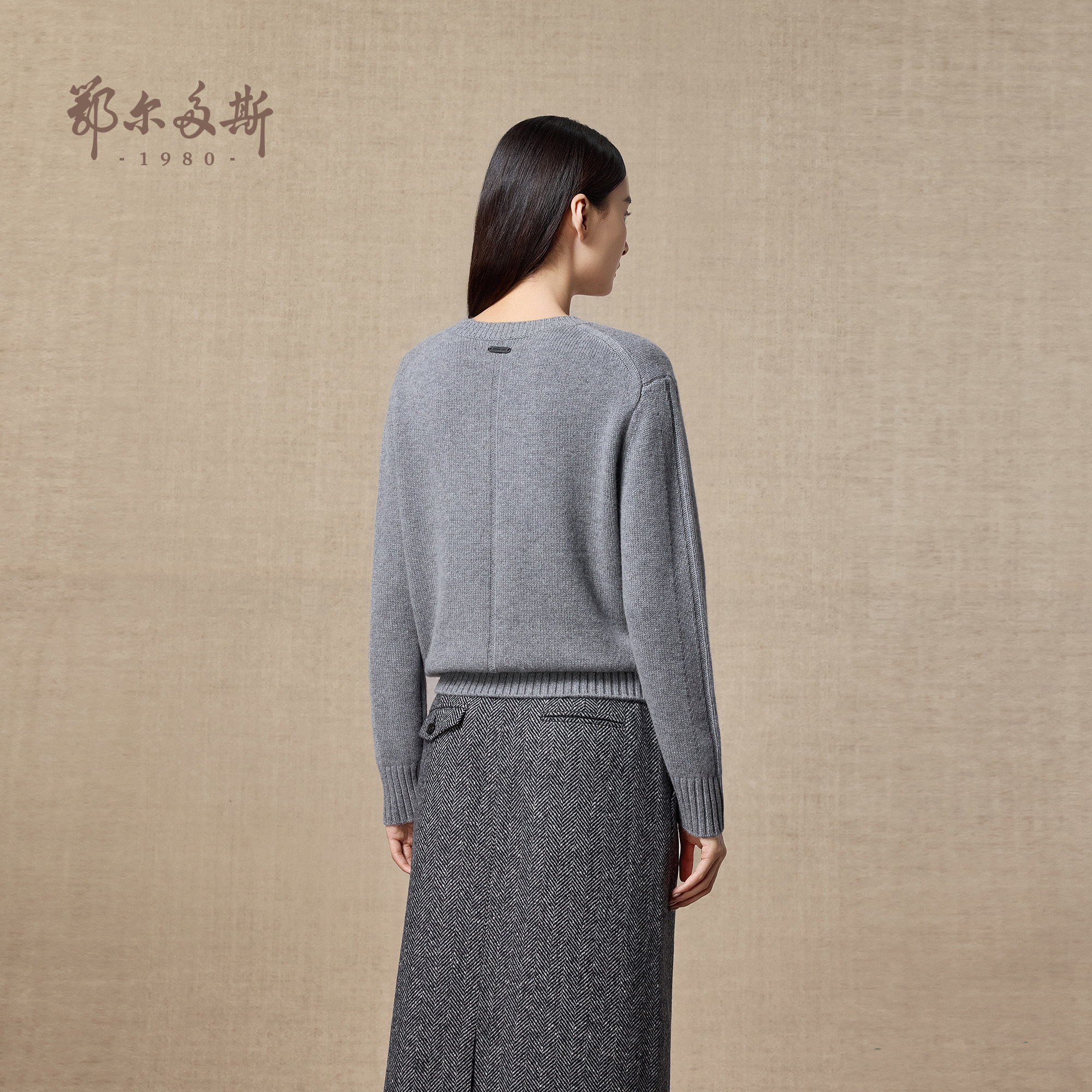 女秋冬通勤百搭套衫 V领纯羊绒针织衫 圆领 鄂尔多斯1980