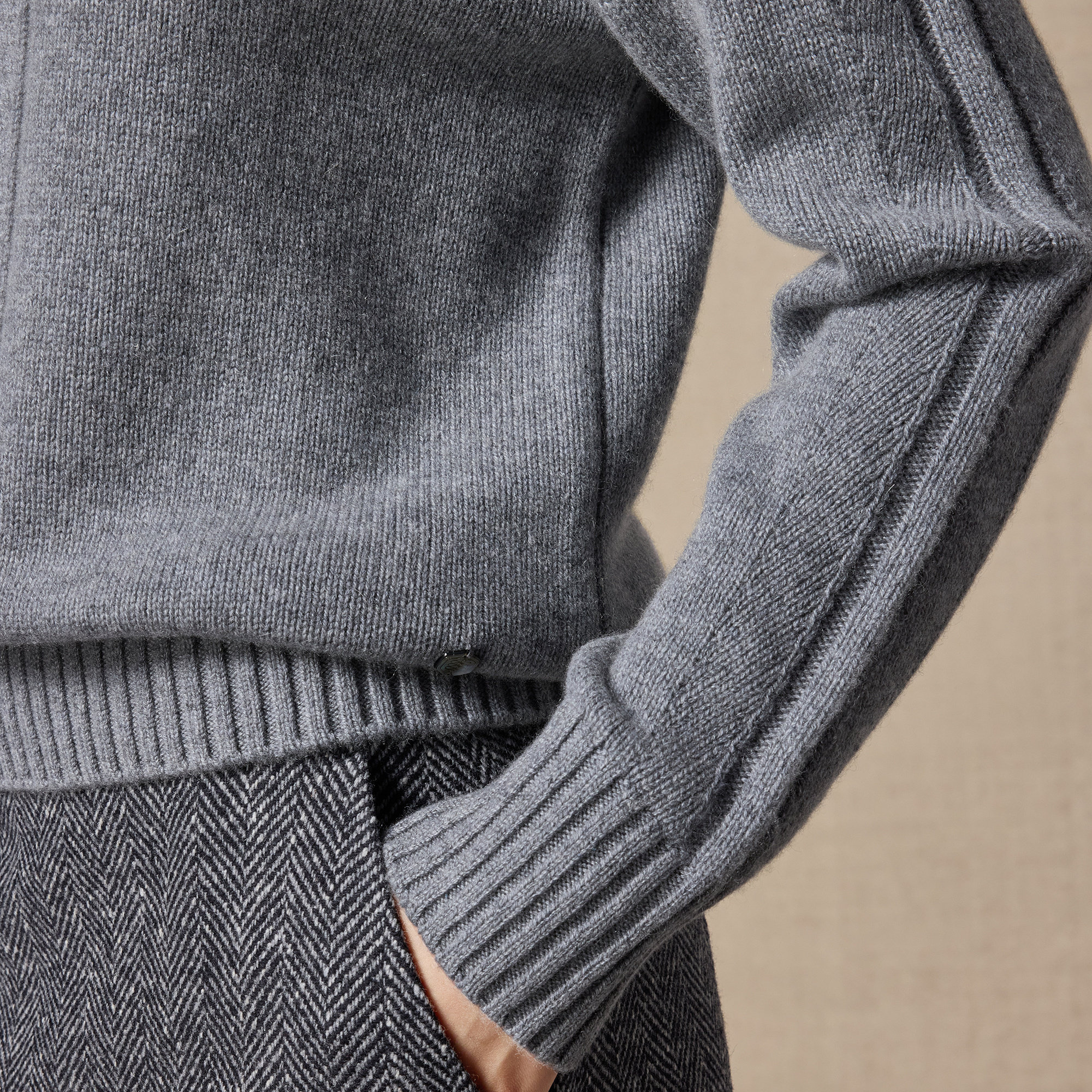 圆领100%纯山羊绒衫 灰色宽松打底上衣 女毛衣秋冬假两件拼色针织衫